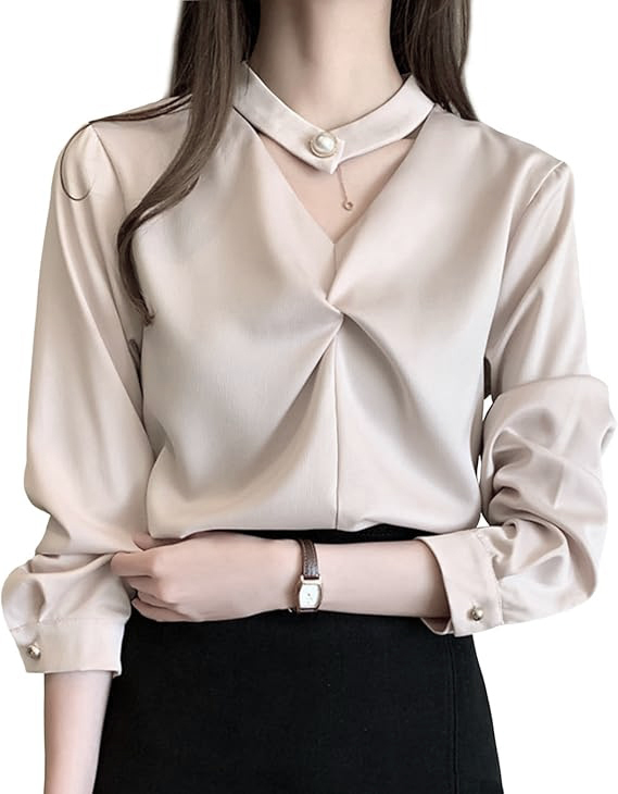 ブラウス レディース 長袖 シャツ シフォン vネック フォーマル XL