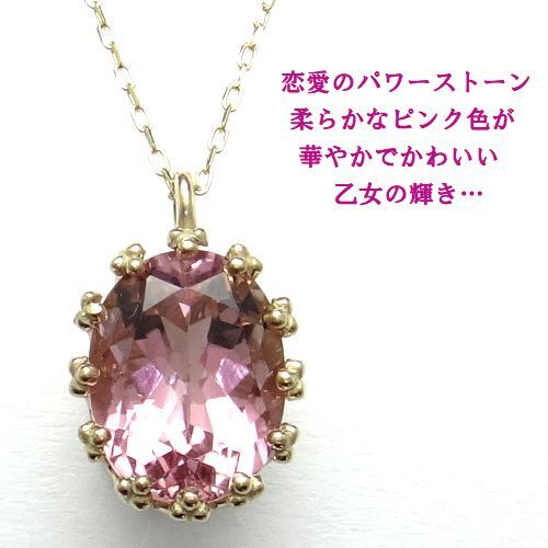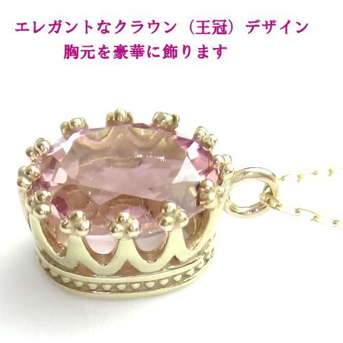 K10 ピンクトルマリン オーバル 1.3cts~ クラウン ペンダント ネックレス 40cm WG YG ジュエリー 王冠 天然石 10月誕生石 箱付き