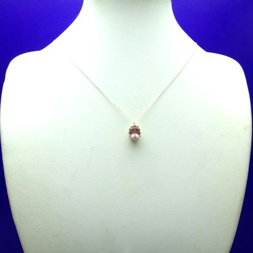 楕円形のオーバルカットが施されており、透明感ある柔らかいピンク色の輝きが美しい逸品です。