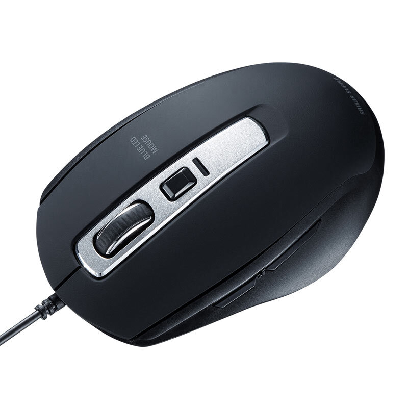 ●手のひらにフィットする形状の有線マウスです。