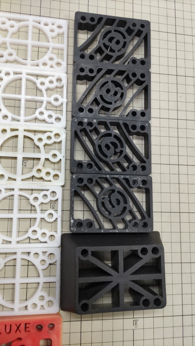 スケートボードのライザーのセットになります。薄さ約4ミリ〜34ミリまでいろいろになります。