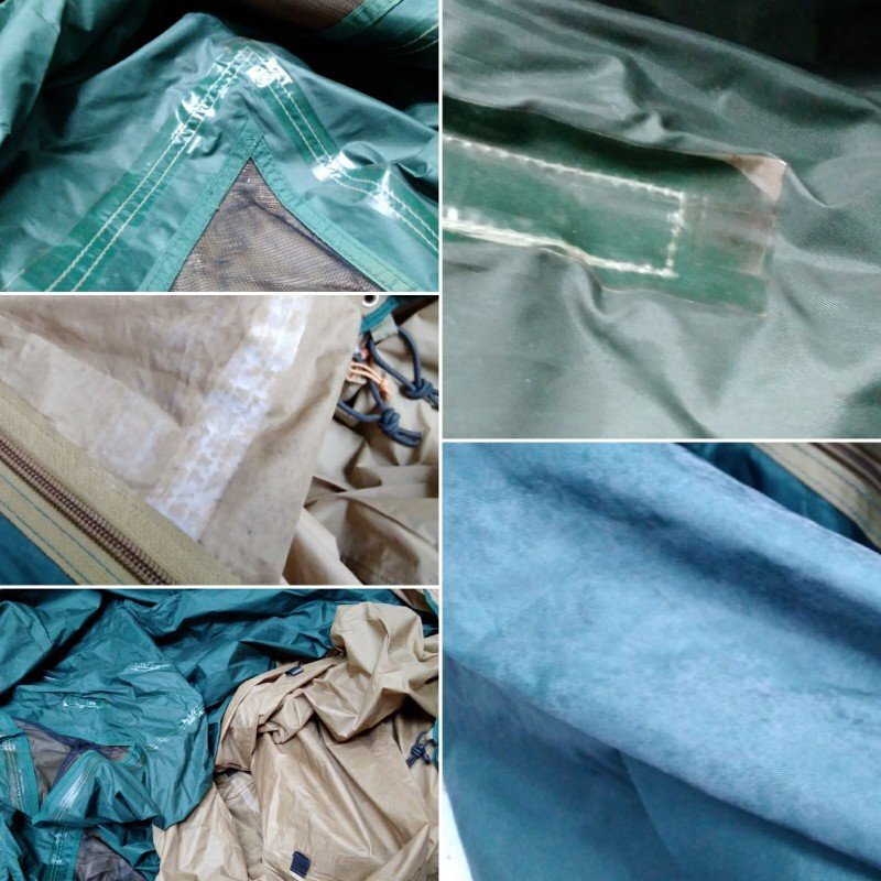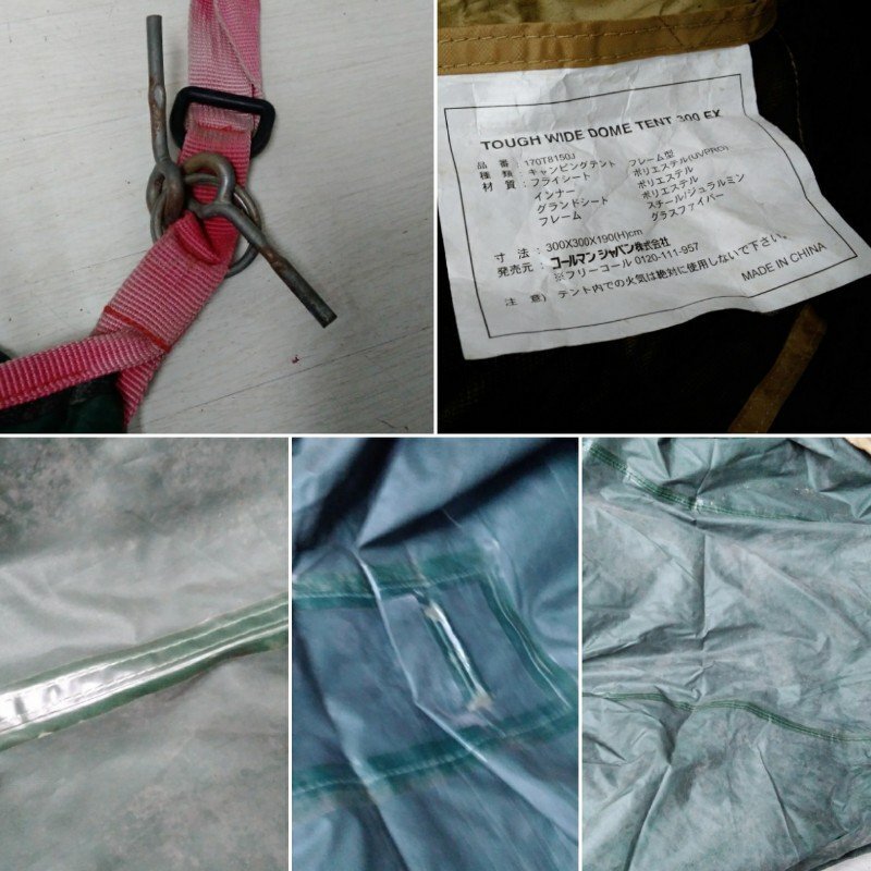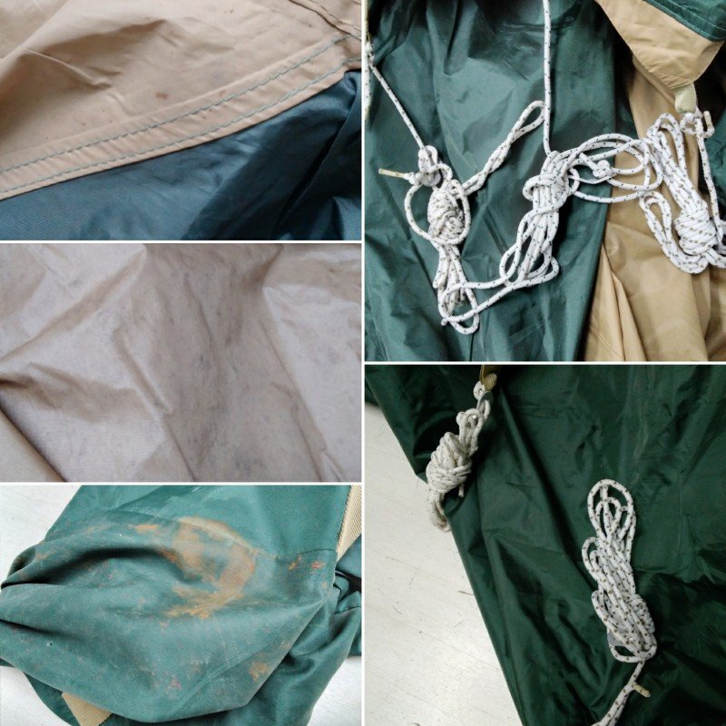 状態は使用品となり、擦り傷・小傷・汚れ・錆などあり、 ポールの差し込み部に一ヶ所変形があり、差し込めますが、 外す時に固いです。 インナーテント・フライシート共に、使用に伴う臭い・ 防水テープの浮き・汚れなどあります。 全体的に使用感が多数見られます。 収納袋に取扱説明書あり。 付属はロープ6本、キャノピー用ポール2本欠品しています。 ABSペグは買い替えています。 |