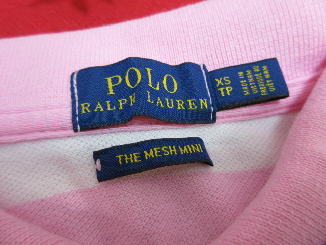 クリRR752 POLO RALPH LAUREN ポロラルフローレン 半袖ワンピース XSサイズ ピンク×ホワイトボーダー