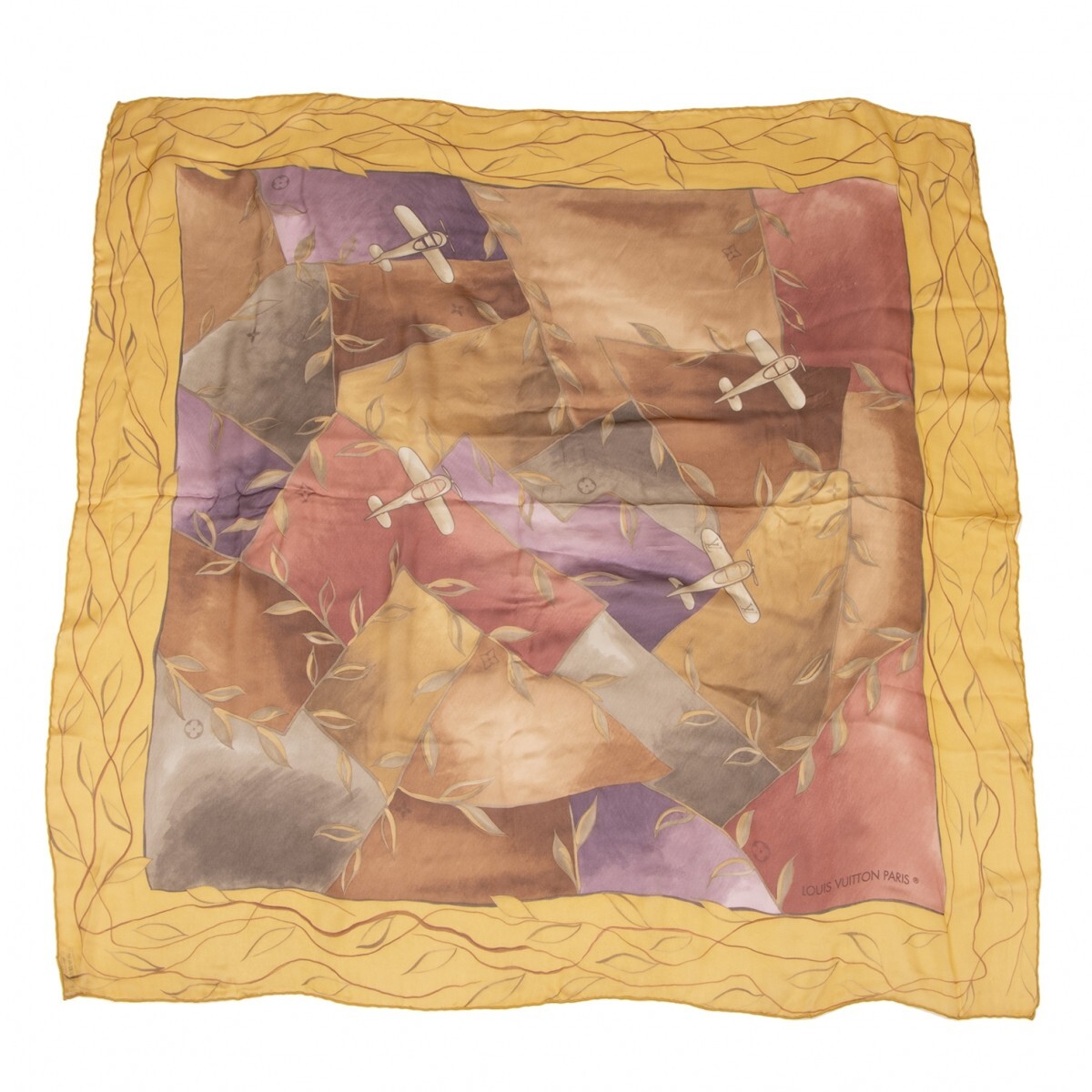 | ルイヴィトンLouis Vuitton モノグラム飛行機プリントマルチカラースカーフ 黄マルチ |