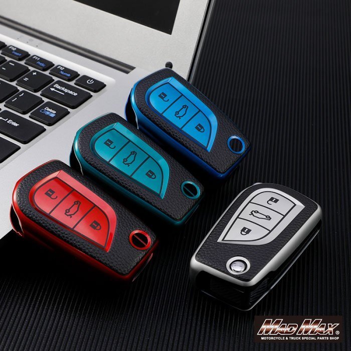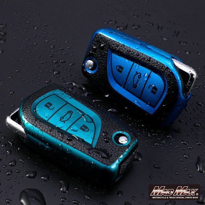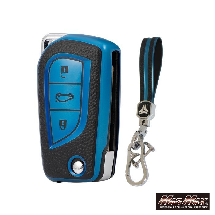 トヨタ専用 レザー調 TYPE C 3ボタン式 TPUソフト スマートキーケース ブルー。