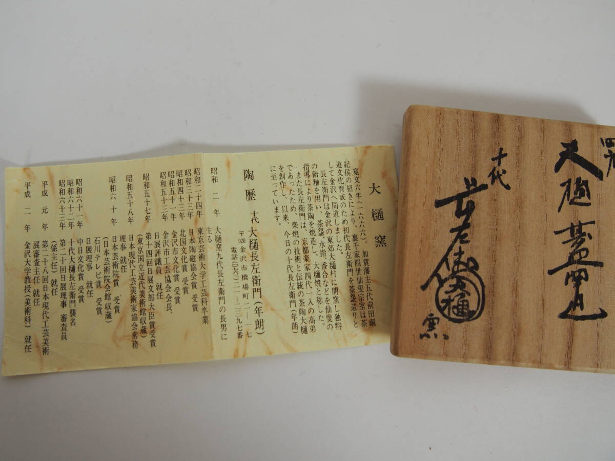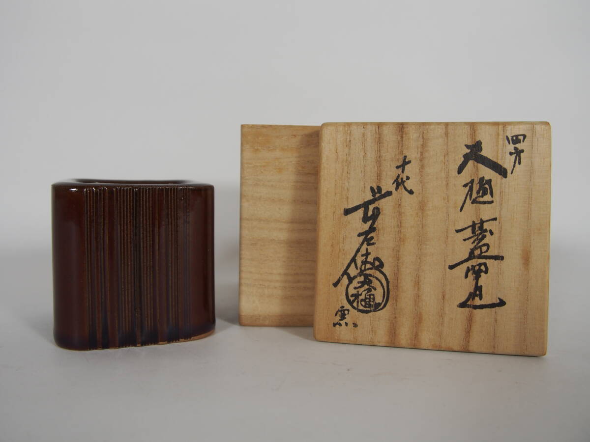 十代 大樋長左衛門 大樋焼 四方 大樋 蓋置 在銘 共箱 由来書 茶道具 J-47