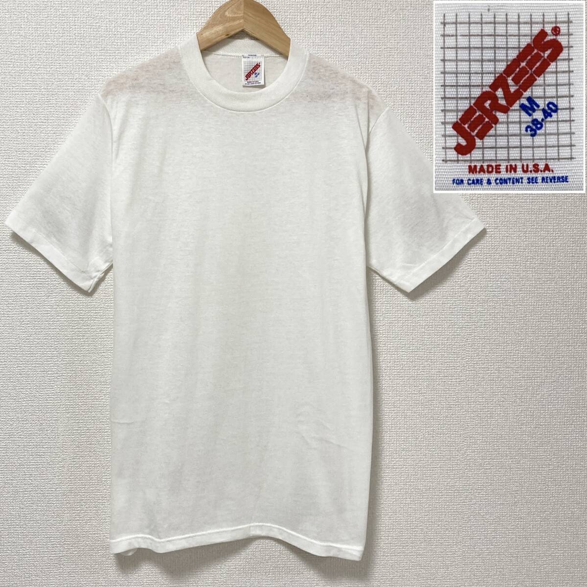 80s 90s JERZEES USA製 VINTAGE 無地 Tシャツ ホワイト 白 Mサイズ ジャージーズ Tee シングルステッチ ビンテージ オールド 古着 1349