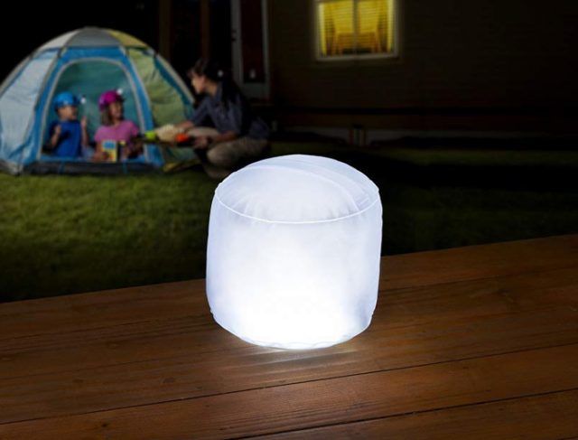 空気で膨らませるだけで手軽に使える、明るいLEDランタンが1冊にひとつ付いてくる!