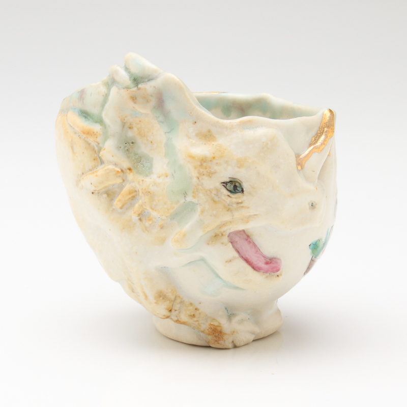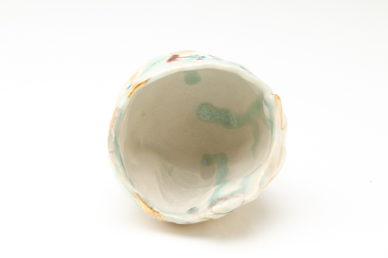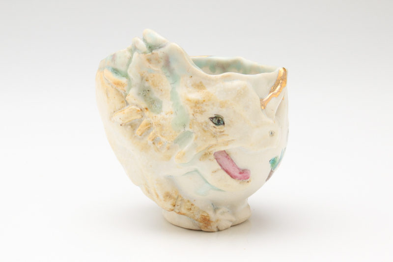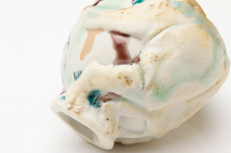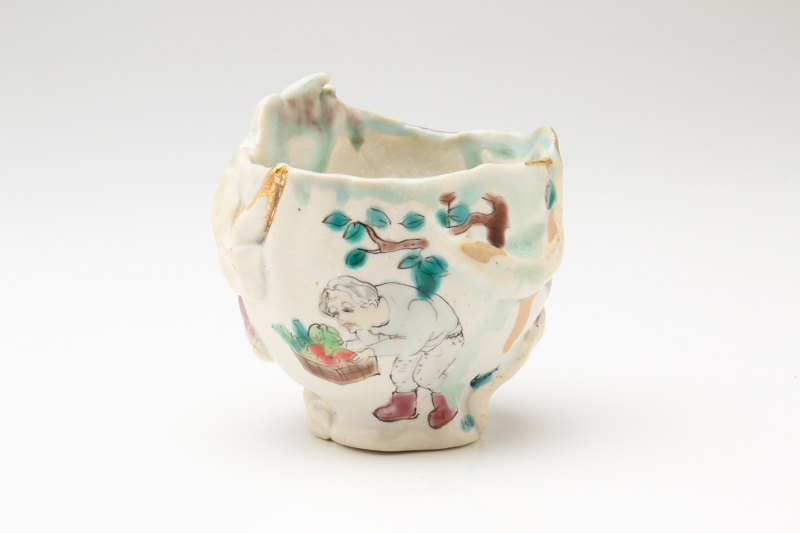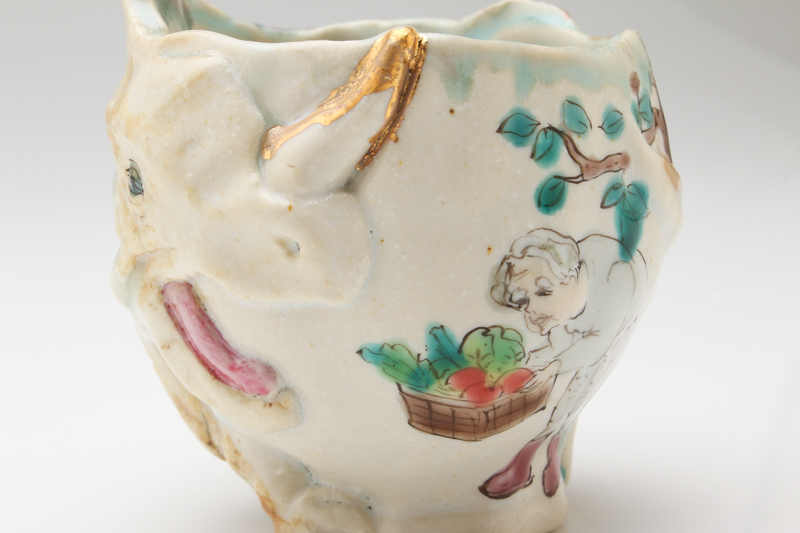 見所 九谷焼の技法を用いて、現代社会の様々な違和感の中、息苦しく感じてしまうことも受け入れ、現代が楽しい時代へと向かえばいいなという願いから楽しい表現を心掛け作品制作されている北井真衣氏。『北井ワールド』と言っても過言でない作品の世界観はユーモラスでありながら何処か毒があり、そのクセのある表現は一度目にしたら脳裏に焼き付いて離れません。