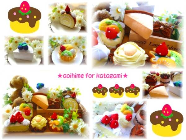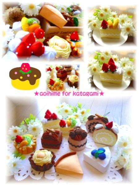 この型紙でこーんなケーキが出来ちゃいます(*^^*) フェルトケーキの基本土台の型紙をsetにしてみました♪ 手作りフェルトケーキの基本パターンですので、お色を変えたりアレンジ次第でたくさんのケーキが作成可能です(*^^*) ショートケーキ型はデコレーションに対応していますよ♪ 型紙は実寸大、ケーキサイズは本物のケーキと同じぐらいです♪ お子様もよく知っているケーキばかりです♪ 初心者のお方でも大丈夫な様にステッチの方法も載せて作成しましたので是非!挑戦してみてね♪ 手作りを一緒に楽しみましょう♪ | |||