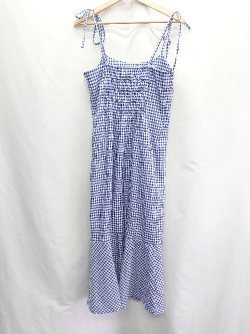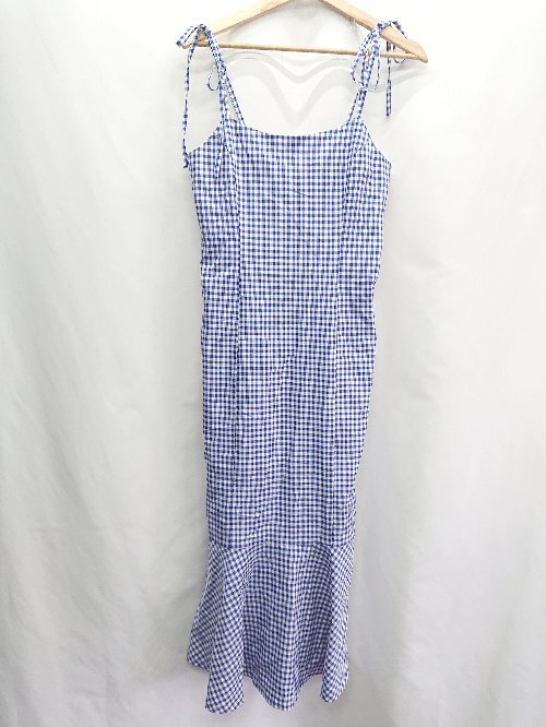 ◇ one after another NICE CLAUP ギンガムチェック ロング丈 キャミソールワンピース サイズF ブルー系 レディース E