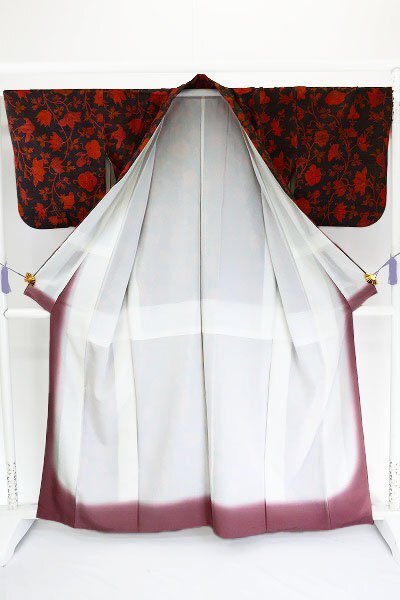 〔着物の色〕 グレー地 〔八掛の色〕 赤紫ぼかし 〔着物の素材〕 正絹 |