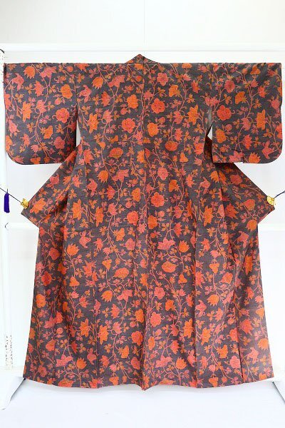 【着物フィ】紬 唐花 身丈158.5cm 裄丈68cm お洒落 着物 カジュアル 仕立て上がり 正絹 m-6351 |