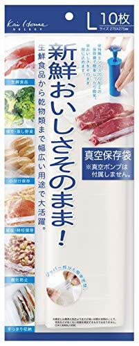 「貝印 KAI 真空保存袋 L 10枚 DH2070」▼4901601201550▼(商品説明)・真空保存袋 Lサイズ DH2070・・PatternName:保存袋 Lサイズ 10枚・サイズ:37×14×3.5cm・素材・材質:袋・外面:ナイロン、内面:ポリエチレン、脱気バルプ・外側:ポリエチレン、内側:飽和ポリエステル樹脂、ジッパー部:ポリエチレン・生産国:韓国説明 調理の下ごしらえ・調理済み保存・スペース効率UP・食材保存に最適。