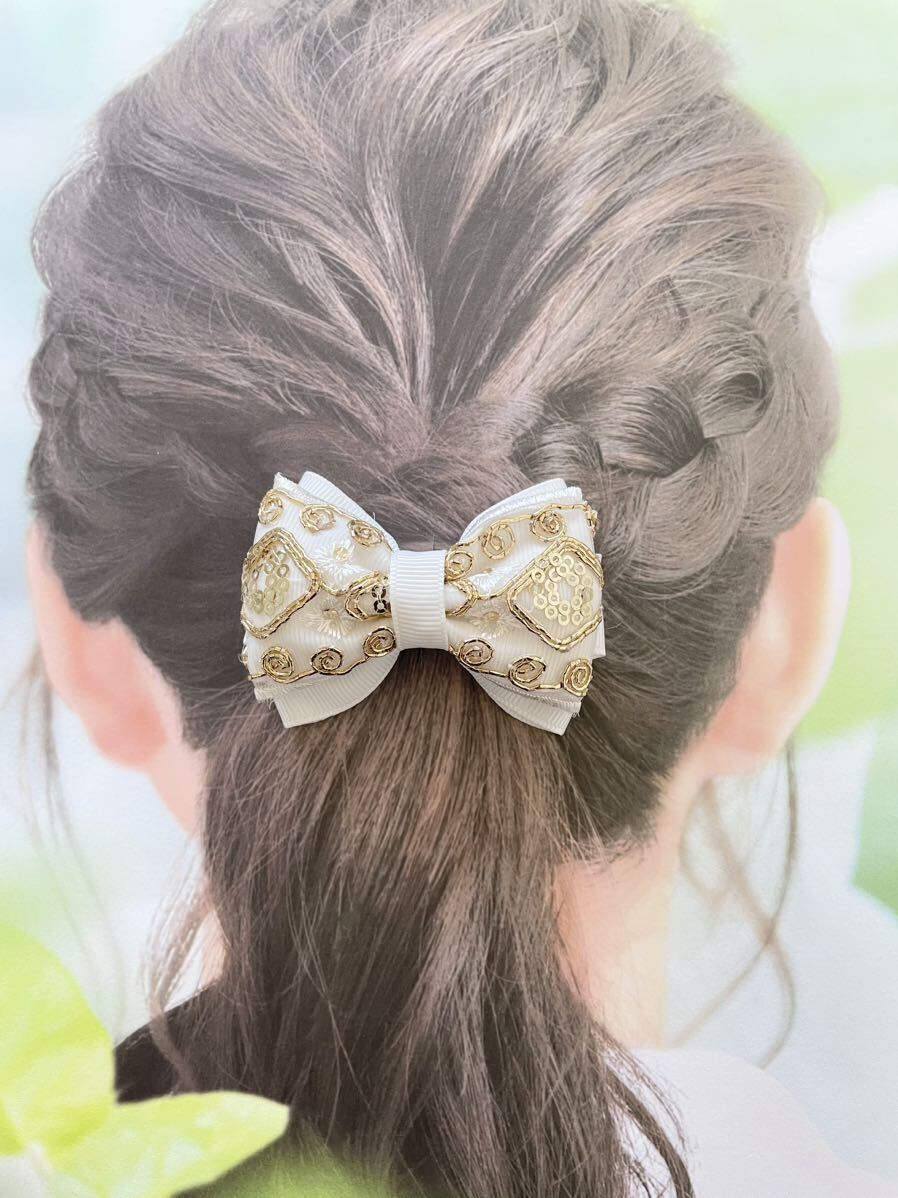 白色のリボンにゴールド系のインド刺繍リボンを使用しました。