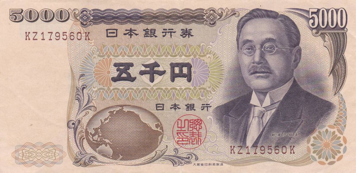 ◇新渡戸稲造5000円 大蔵省印刷局 褐色 2桁 並品★