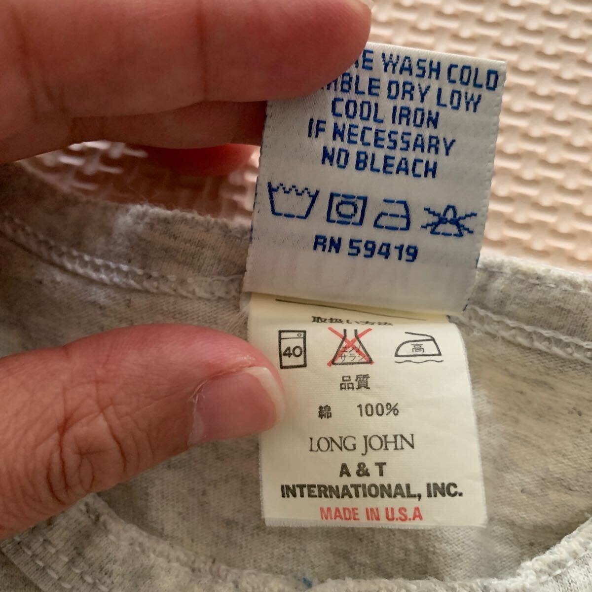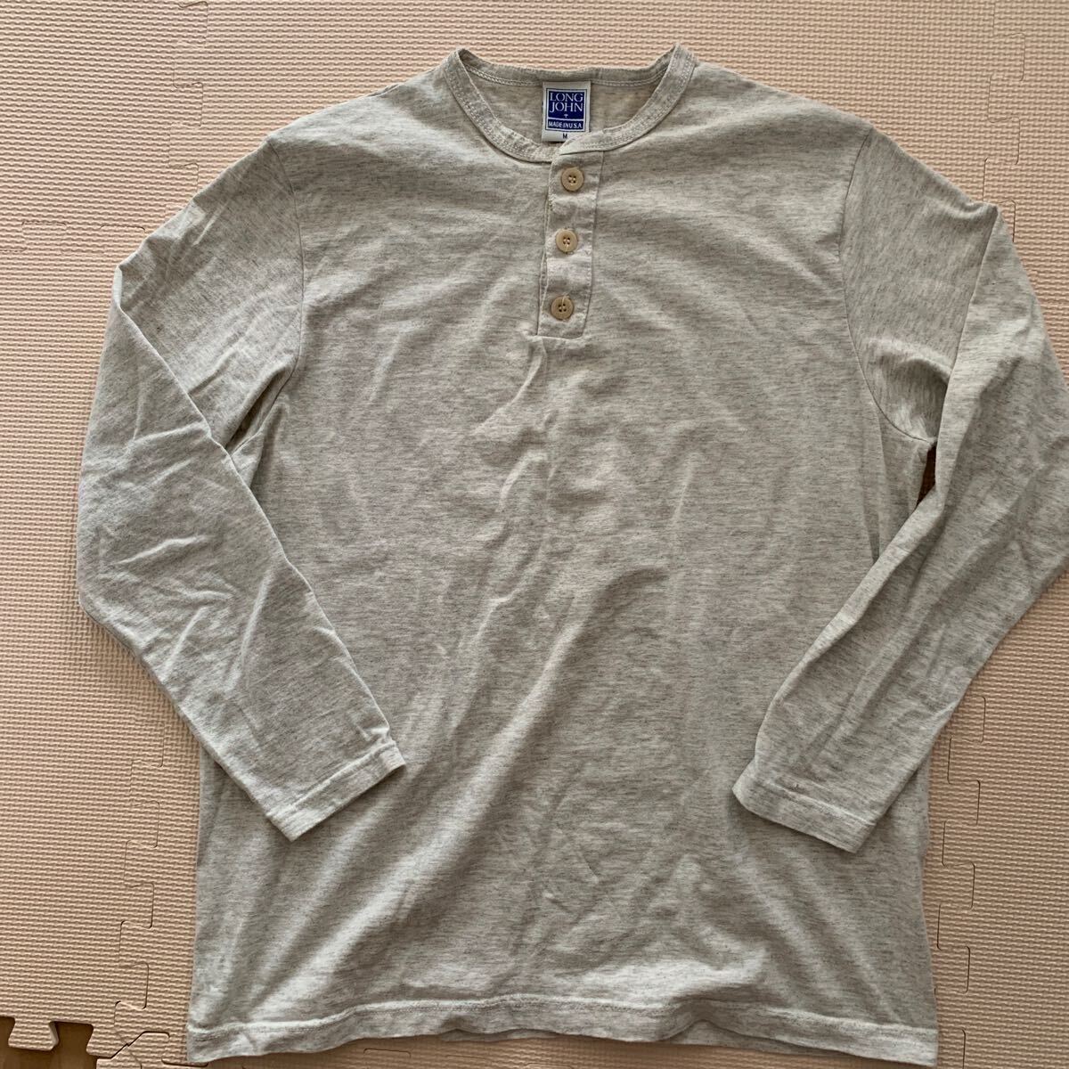 90s-00s【LONG JOHN】ロンジョン ヘンリーネック 長袖Tシャツ 薄いグレー USA製 Mサイズ