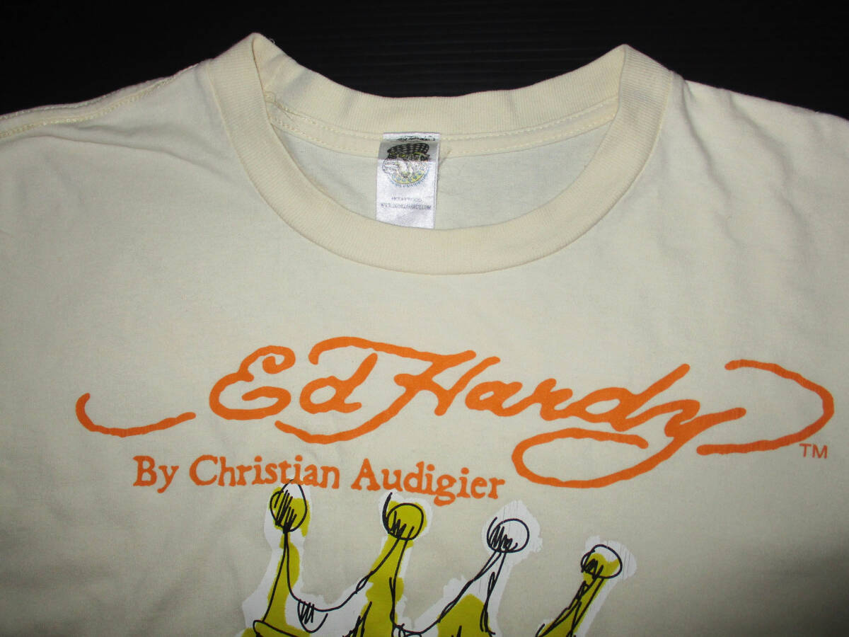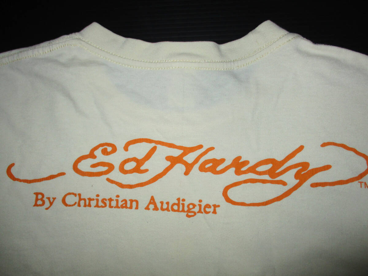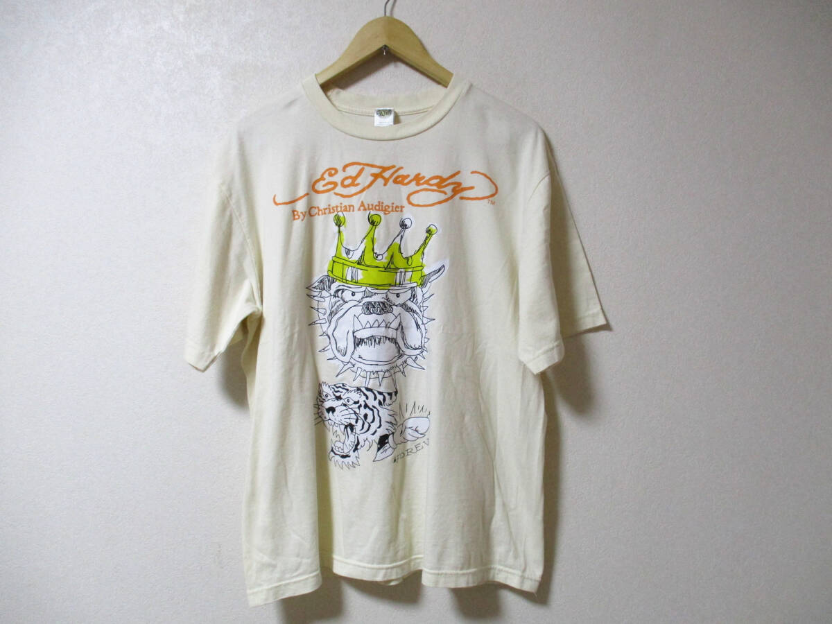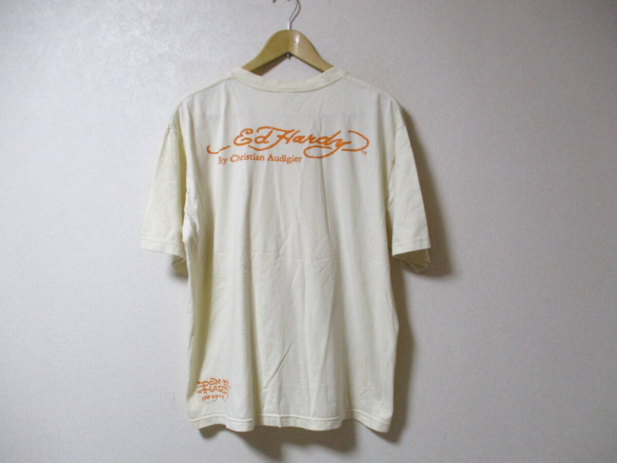 USA製☆Ed Hardy エドハーディー プリント Tシャツ。USA製の本物です。素材は綿100です。色はクリームぽい色目です。色は画像でご判断ください。