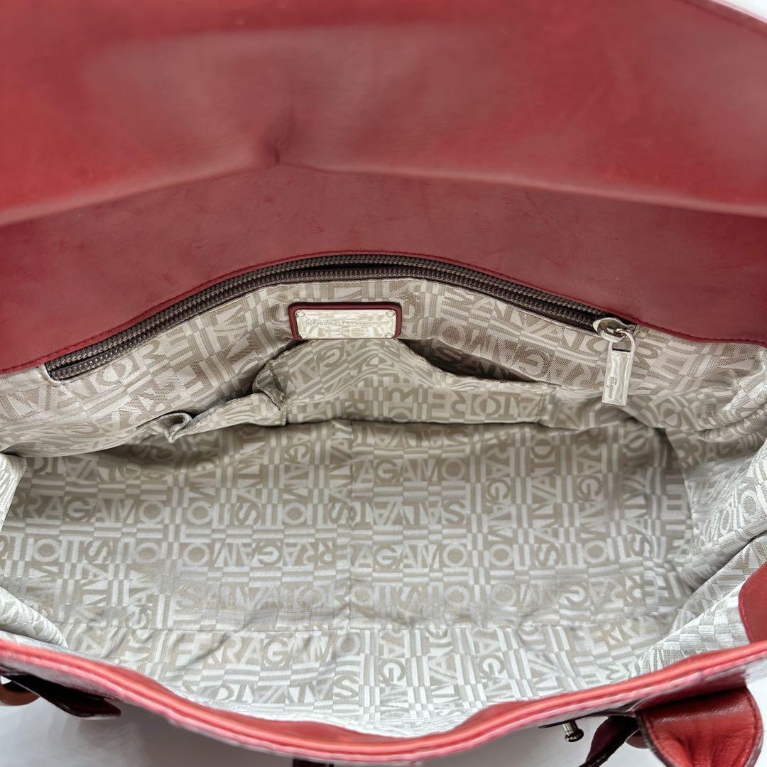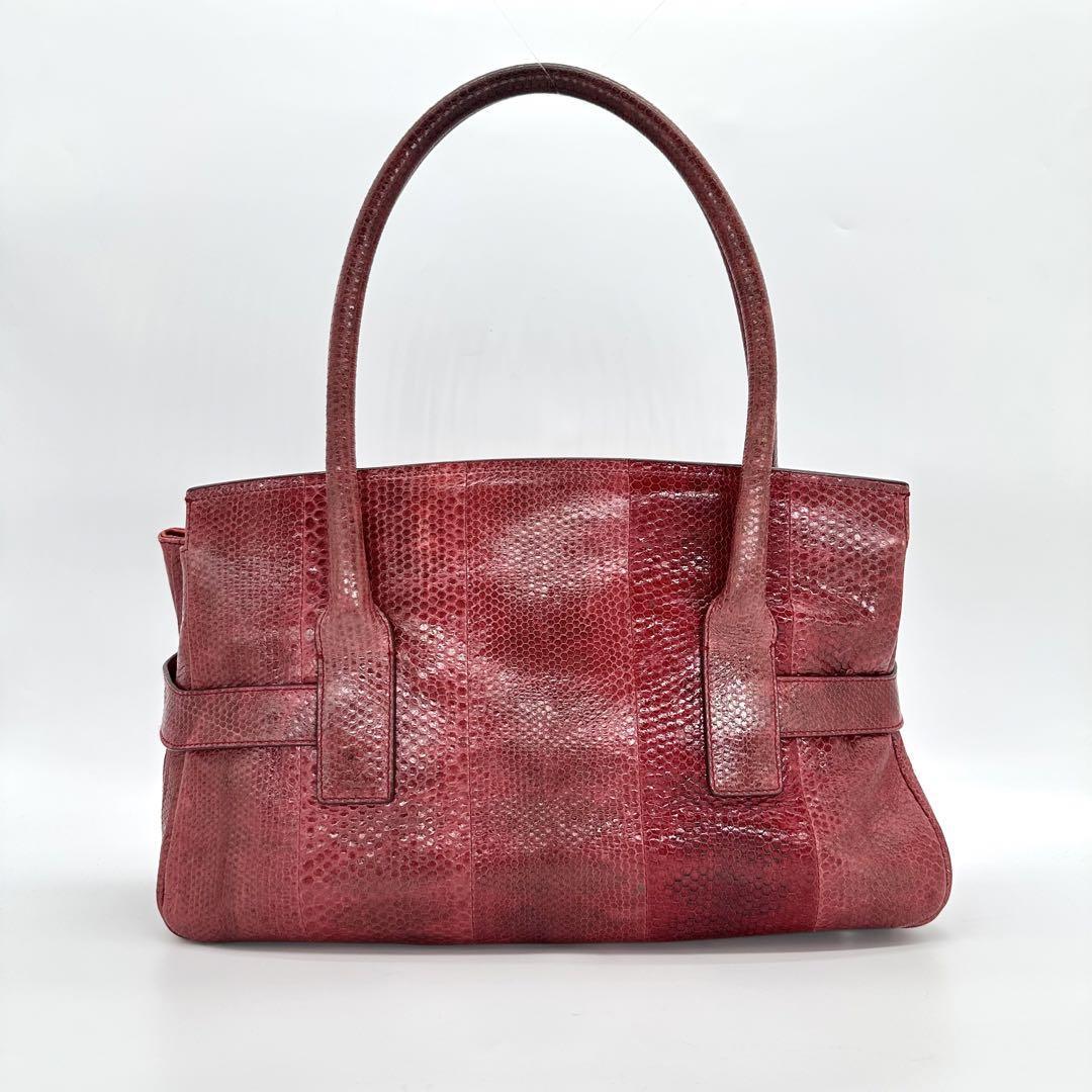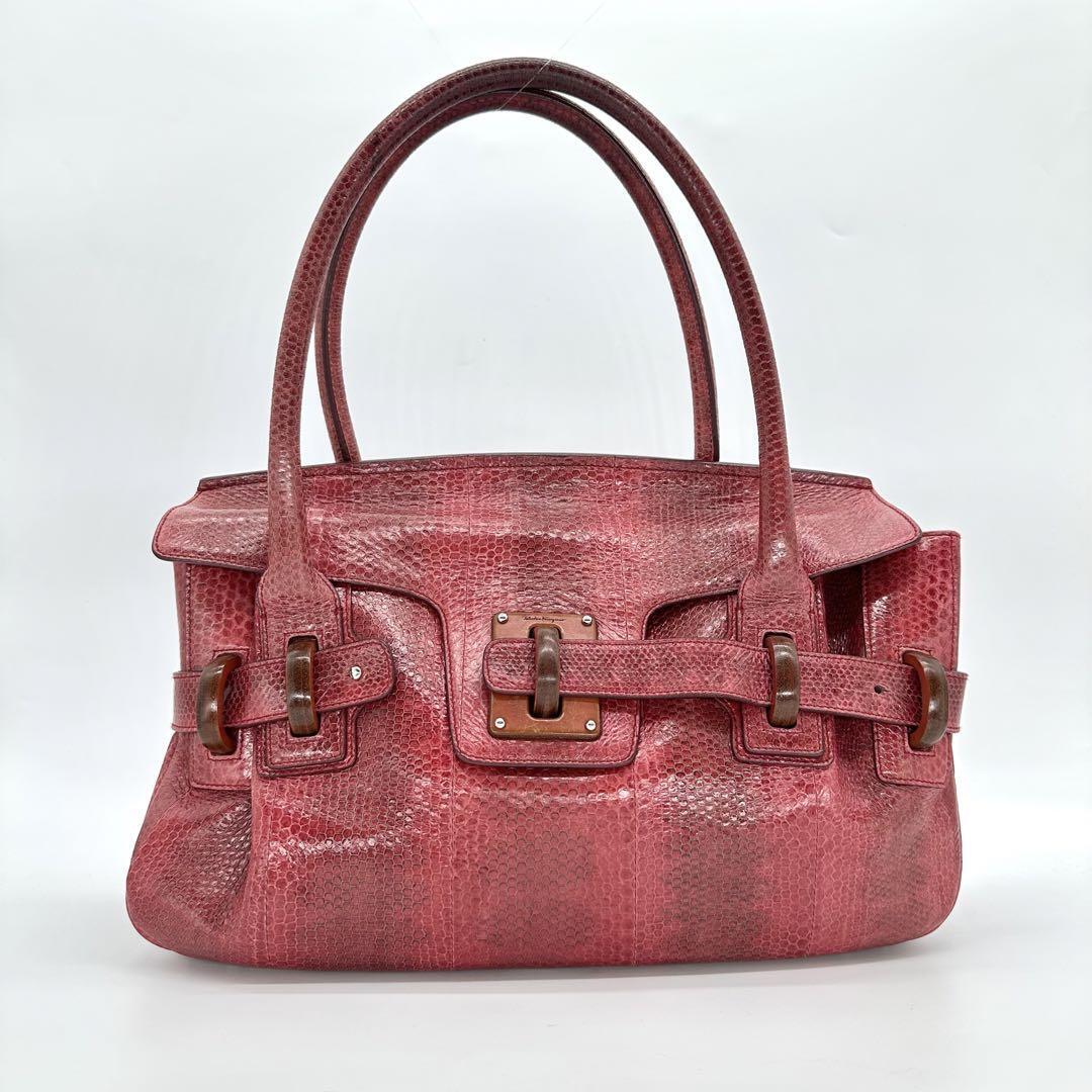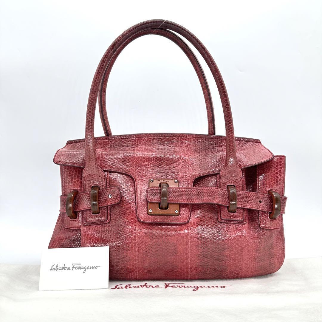 | フェラガモ の ウッドトート トートバッグ 。 パイソン 型押し の レッド レザー が かわいい デザイン。 マチあり 大容量 たくさん入る 使い勝手のいいバッグです。 |