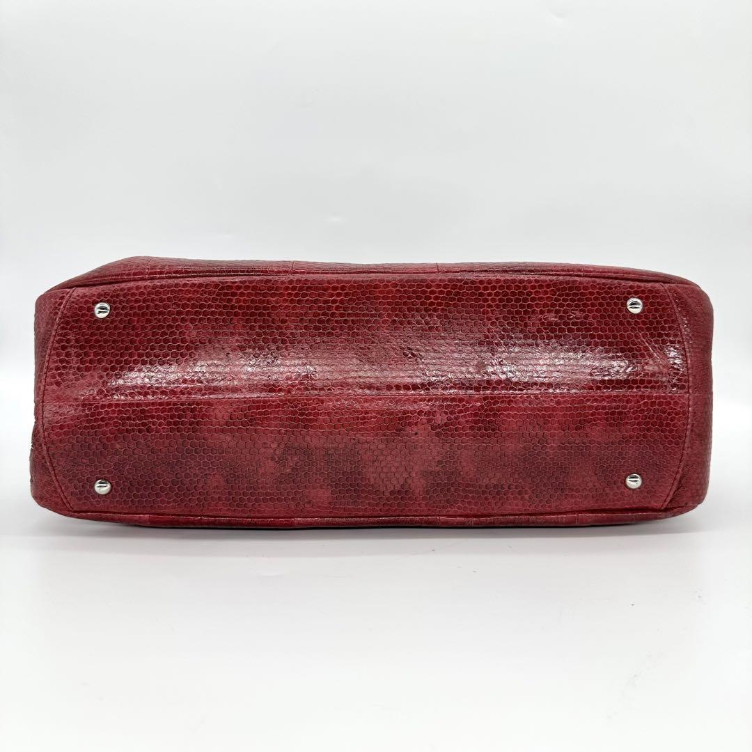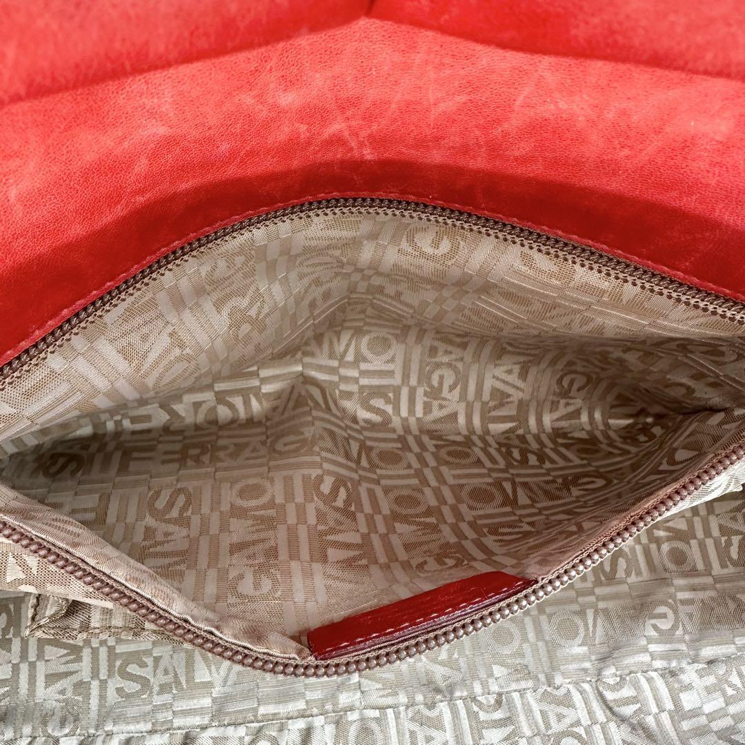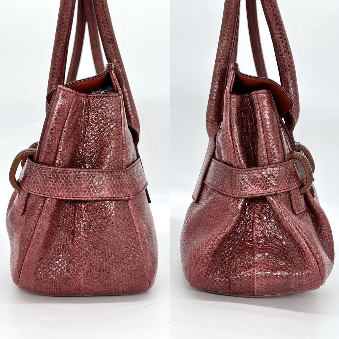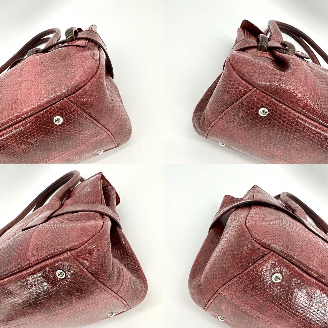 | フェラガモ の ウッドトート トートバッグ 。 パイソン 型押し の レッド レザー が かわいい デザイン。 マチあり 大容量 たくさん入る 使い勝手のいいバッグです。 |