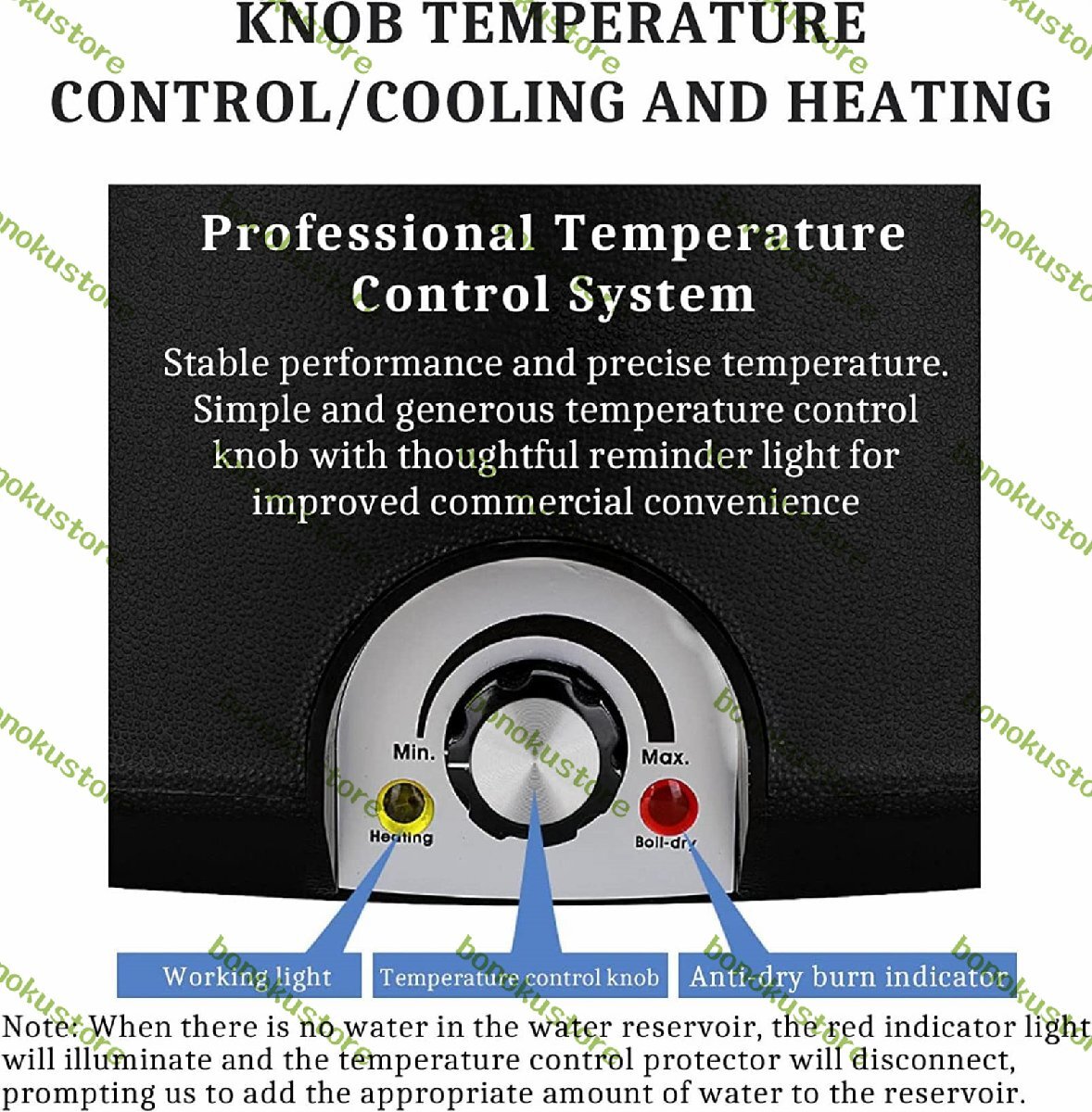 ノブ温度制御:安定したサーモスタットと正確な温度を備えた電気スープケトルのプロフェッショナルな温度制御システム。シンプルでゆったりとした温度制御ノブ。60?85°Cの温度調節が可能で、商業的な利便性を高める配慮の行き届いたライト付き。