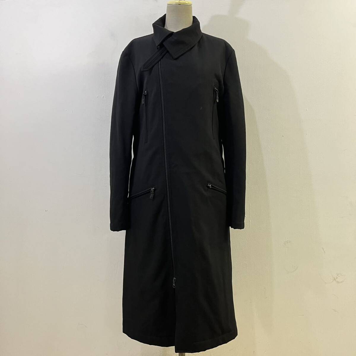 Y-3 Yohji Yamamoto ロングコート 中綿コート ダブルジップ 刺繍ロゴ デザインコート 黒 ワイスリー ヨウジヤマモト【送料一律/同梱可能】Nの出品です。