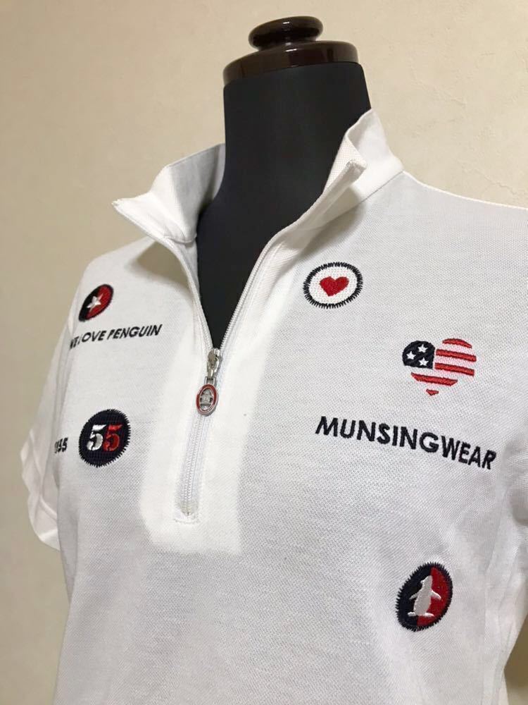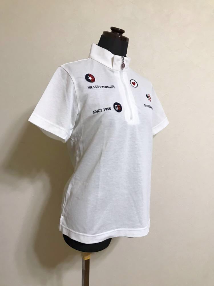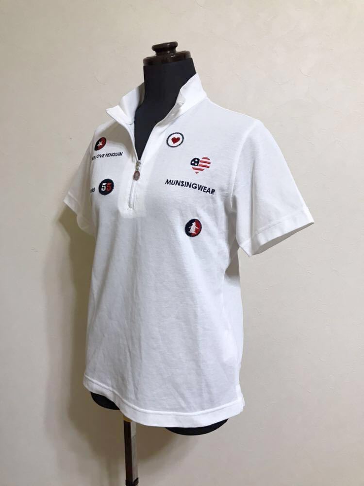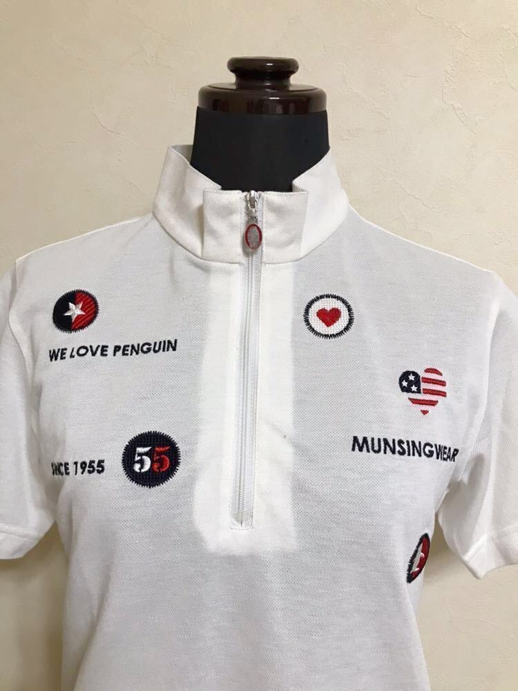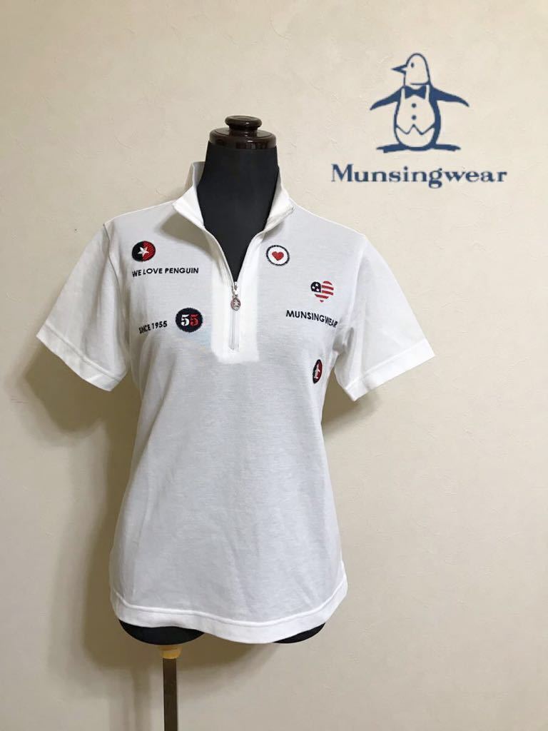 【美品】 Munsingwear golf マンシングウェア ゴルフ レディース ハーフジップ ウェア プルオーバ 刺繍 サイズM 半袖 白 デサント XLC1512