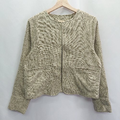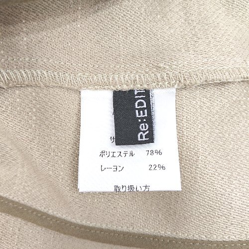 ◇ Re EDIT リエディ ツイード 綺麗め 上品 長袖 ノーカラー ジャケット サイズL ベージュ レディース E