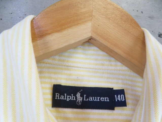 027m12◆良品です◆キッズサイズ 140cm◆Ralph Lauren ラルフローレン ボタンダウン ストライプ柄 長袖オックスフォードシャツ/ジャケット