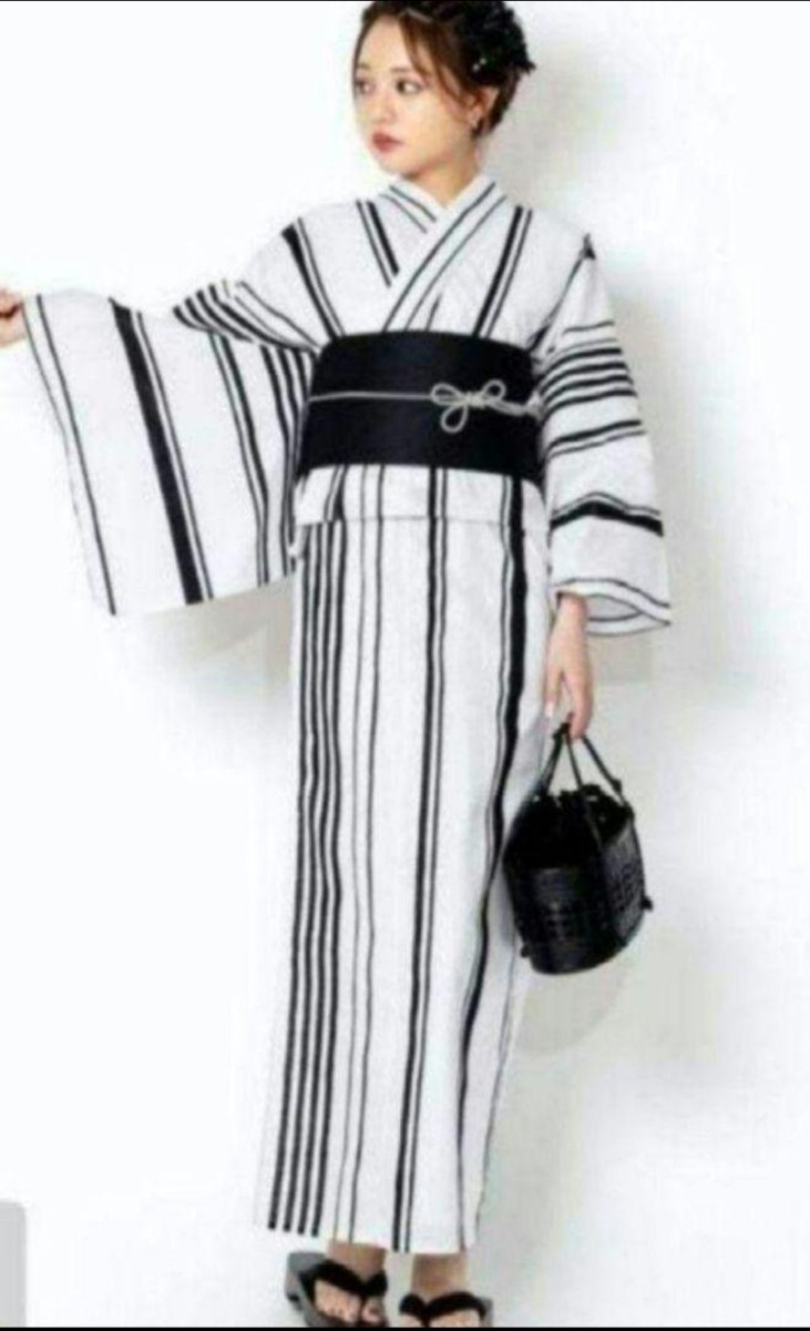 品のある地色、大人びた雰囲気の、シンプルしま柄浴衣です。