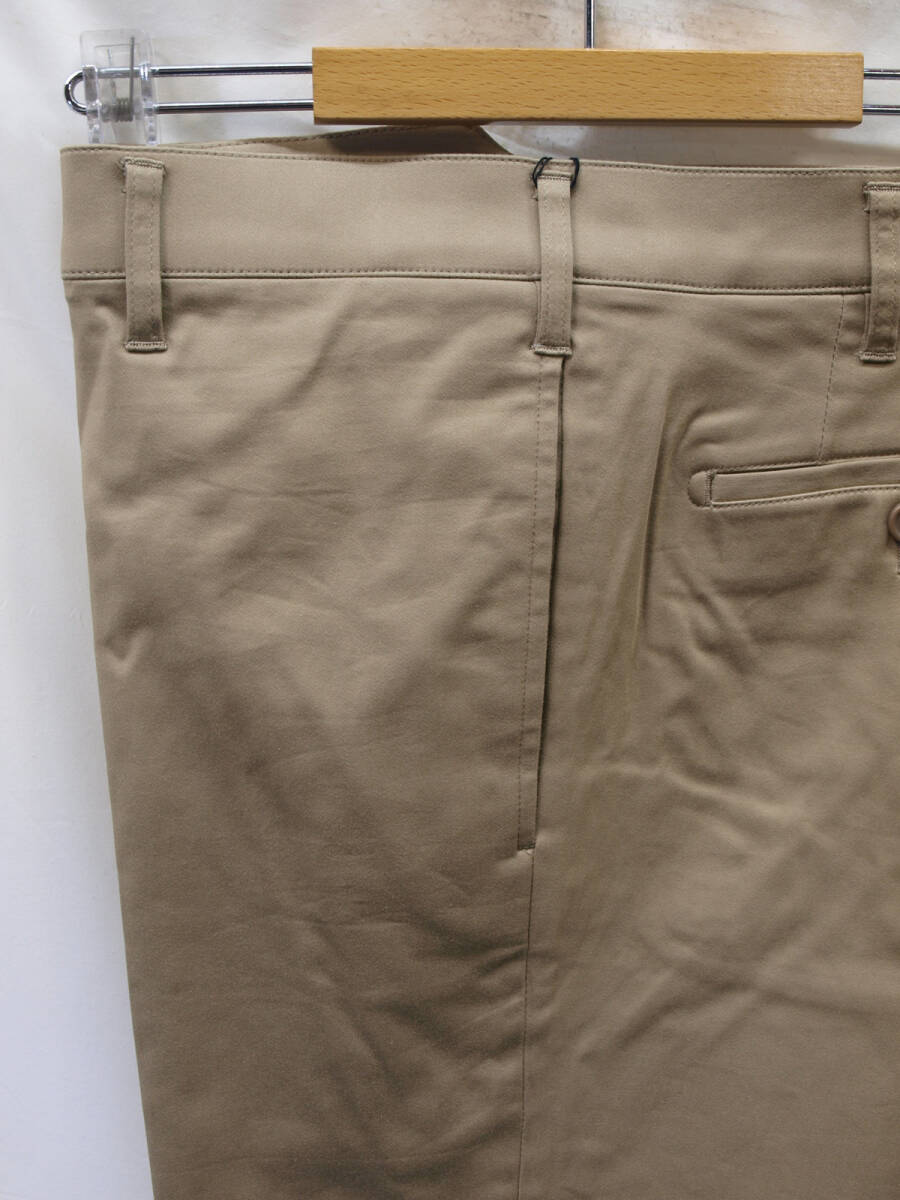 ■ ■ 【表記サイズ】 115cm 【実寸】 胴回り実寸 117cm かるくはかって117cmで適度にひっぱってはかると128cmです。 渡り幅 37cm 股下10cm部分 33cm 股上 28.5cm(前股上 31.5cm) 股下 86cm 裾幅 22.5cm(新品/3つ折り始末の状態) ■ ■ 素材/色など商品説明 ■ ■ 【素材】 綿58% ナイロン40% ポリウレタン2% 【色/柄】 ダークベージュ無地 軽く、さらっとした触り心地の春夏用、やや薄手のストレッチ綿混素材を使っております。 春先~夏~秋にかけての春夏メインのシーズンに対応致します。 【仕様等】 ノータック/脇、縦付けポケット/後ろポケット、片玉で左にボタン付き/ウォッチポケット付/フロントはファスナーでボタンとホック留め/内掛けボタン付き/ヒザ裏なし/ウォッシャブル(WASHABLE)対応(ネット使用、弱水流、水温30℃以下) ポケット袋部分にはメッシュ素材を使用しており普通のポリエステルの裏地と比べると通気性があり軽量で清涼 感があります。(ポケットの縁はパイピングできちんと補強しております。) きちんとベルトループも付いており見た目にはわかりませんがウエスト部分にストレッチの効いたベルト芯がはいっており のびのび伸縮致します。 【デザイン】 極端にタイトではないですが、もたつきのないすっきりとしたシルエットで程よい細さのスタイリッシュスタイル、きれいめで大人のノータックストレッチスリムパンツです。 きちんとした縫製仕立てで、ウエスト部分が自然に伸縮致しますので立ったり座ったりした時や食後など圧迫感が少なく履き心地が良いです。 ・ご家庭でお洗濯が出来、取り扱いが楽な素材を使用しており、わりときちんと感があります。 やや薄手でほどよいハリがある春夏向けのストレッチ綿混素材を使用しており、春先~夏~秋口にかけて春夏メインのシーズン対応商品 春夏物・新品・裾上げ未処理 ■ ■ お直しについて ■ ■ 別途料金にてお裾お直しを承っております。 お裾直しをご希望される場合、ご落札後、取引メッセージにてご連絡下さい。 料金は、シングル仕上げ1100円/ダブル仕上げ1300円/ウエスト詰め出し 1500円 (3~4cm程度までの直し)でございます。 オークション終了後、取引メッセージにてご指示下さい。 かんたん決済お支払い時、送料にプラスしてお支払頂くかたちになります。 お裾直しをうけたまわった場合、平日3~5日程(土日祝、夏季、冬季休業日除く)、出来上がりまでに日にちがかかってしまい、返品やサイズ交換などは出来か ねますことをご了承下さい。 ■ ■ お支払い&配送方法&送料等 ■ ■ お支払いはかんたん決済のご利用となります。 配送方法は一部地域を除いて佐川急便(袋/60~80サイズ)のご利用になります。 送料は、本州、四国/800円 九州/1200円 北海道/1300円 です。 離島もしくは一部地域は上記送料でゆうパックの利用となります。 ご面倒をお掛け致しますが沖縄県への配送の場合、ゆうパックのご利用(岐阜県から60~80サイズ)となりますのでお問い合わせ下さい。 到着日時、お時間指定帯(午前中/12時~14時/14時~16時/16時~18時/18時~20時/19時~21時)のご指定可能。 複数ご落札頂いた際、同時梱包/まとめて配送で送料は1点分にてお送り致します。 ヤフーかんたん決済お支払いお手続きが完了次第、定休日(土日祝)除く毎17時締めにて即日発送致します。 毎平日17時頃までの発送業務となります。 ご入金確認後、即日発送を心がけておりますが、土曜日、日曜日、祝日、 夏季(8月13日~8月16日)、冬季(12月30日~1月4日)とお休みを頂いておりますので、 その間御入金を頂いた場合、翌平日の発送となりますことをご了承下さい。 ■ ■ コメント ■ ■ 新品ですが在庫に限りが御座います為、大変申し訳御座いませんが、ノークレーム・ノーリターンにてどうぞ宜しくお願い致します。 K---14--- |