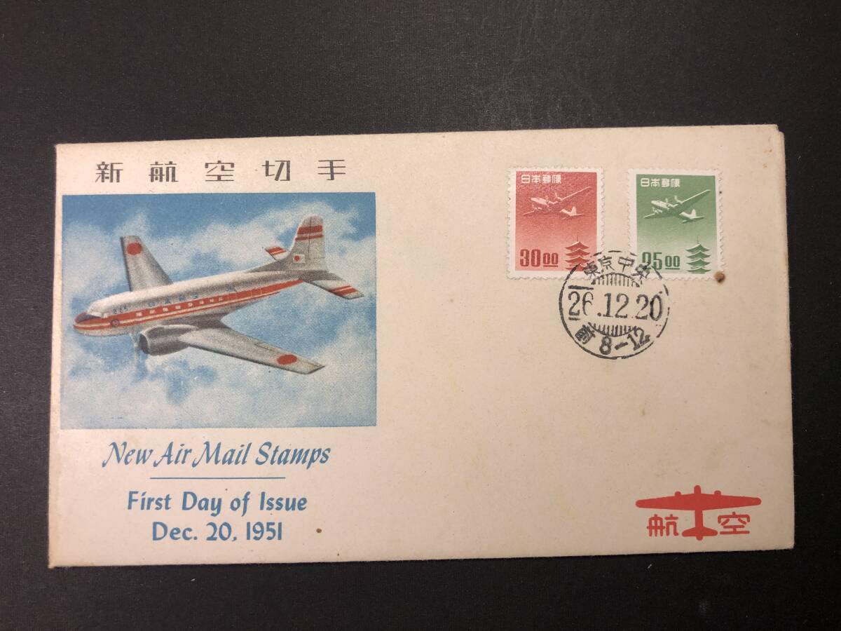 ★商品名:初日カバー 航空切手 五重塔航空 25円(銭単位)・30円(銭単位)「ダグラス機と五重塔」 2種張 郵便友の会版