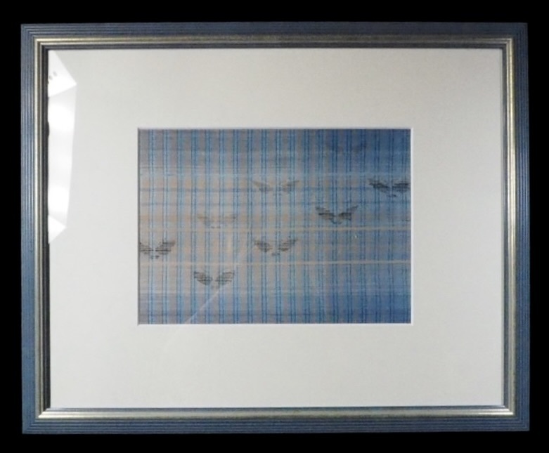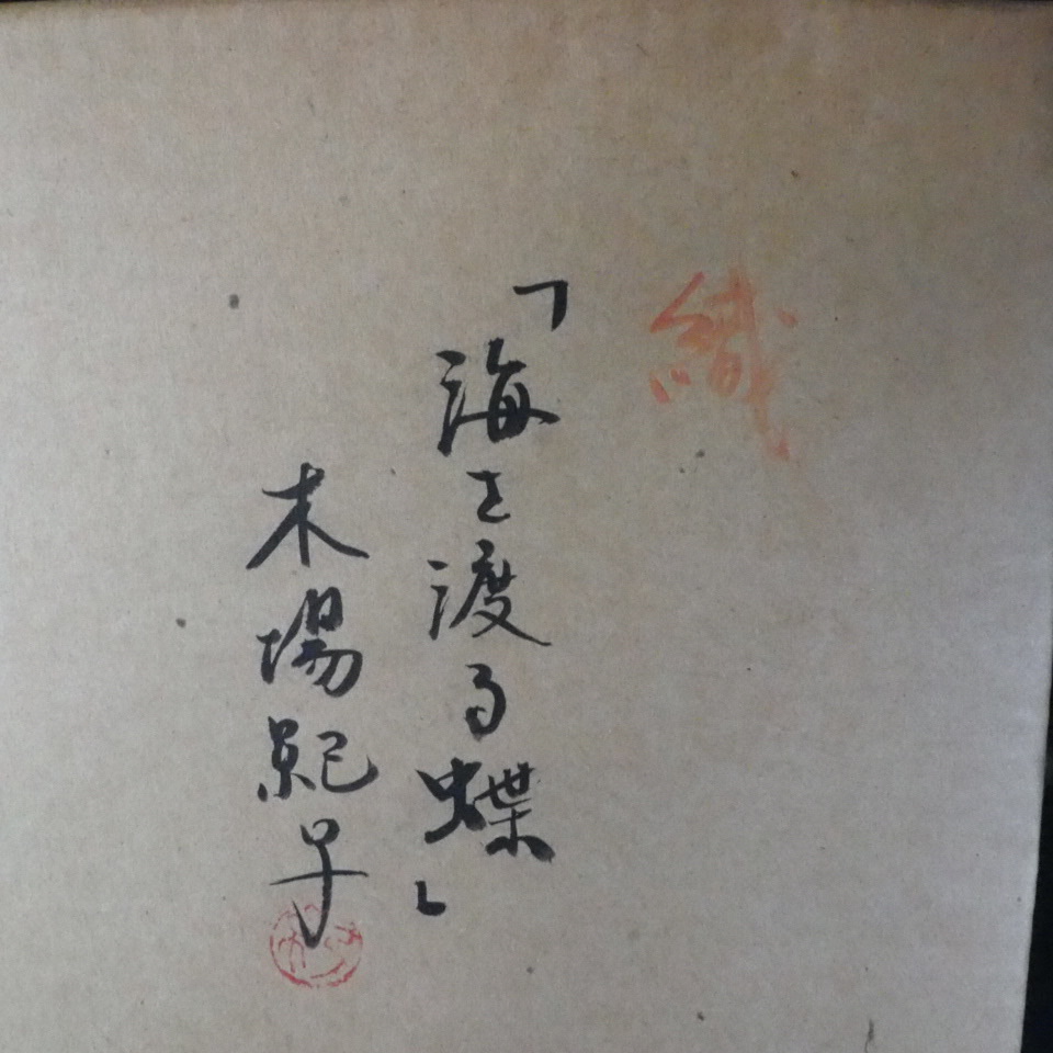 織物工芸 手織 額装品 箱付 木場紀子作「海を渡る蝶」