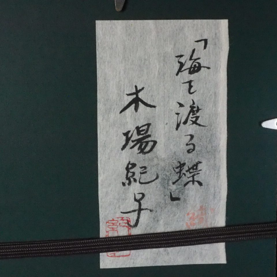 日本工芸会正会員!織物工芸 手織 額装品 箱付 木場紀子作「海を渡る蝶」HYK606
