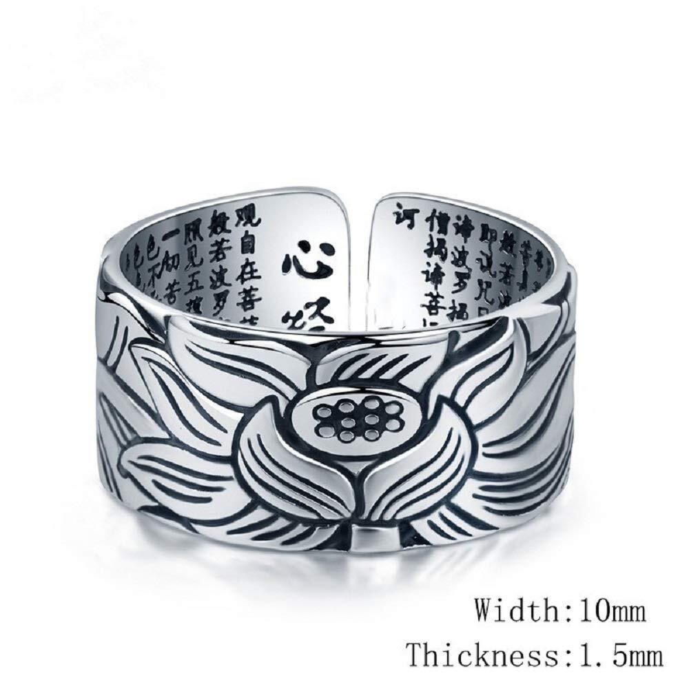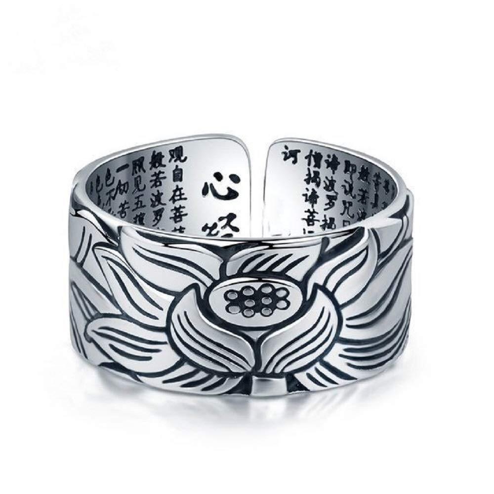 大きな蓮の花 蓮花 般若心経 フリーサイズリング 指輪 シンプル お洒落アイテム リング ステンレス かっこいい 韓流 かわいい リングセット
