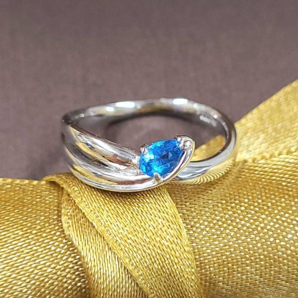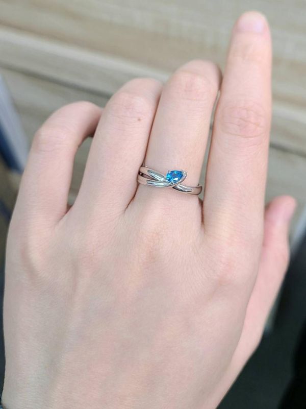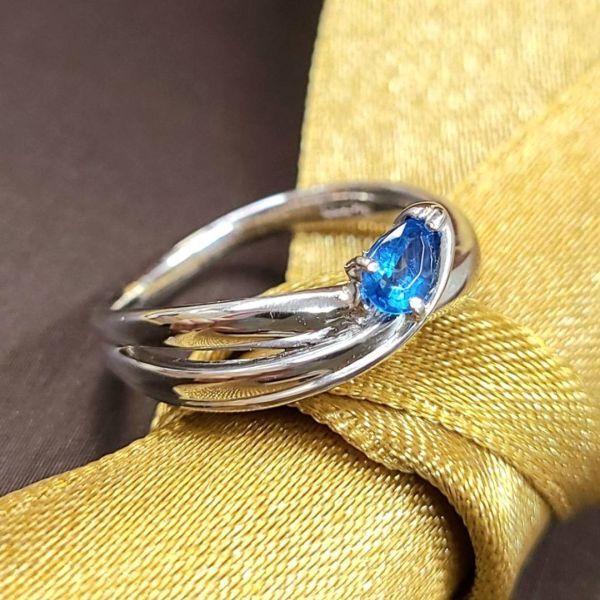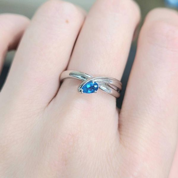 夜空の神秘を閉じ込めたような、深いブルーが美しいアウイナイトリング。 0.18ctのペアシェイプカットは、光を繊細に反射し、見る角度によって表情を変える魅力的な輝きを放ちます。