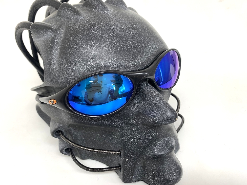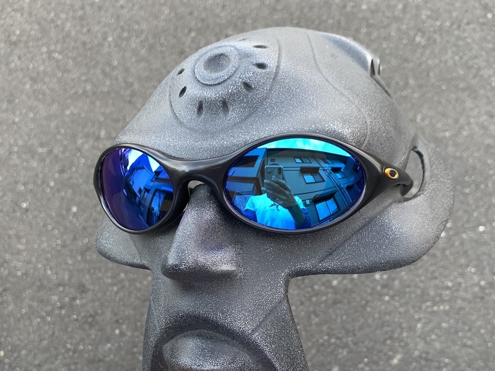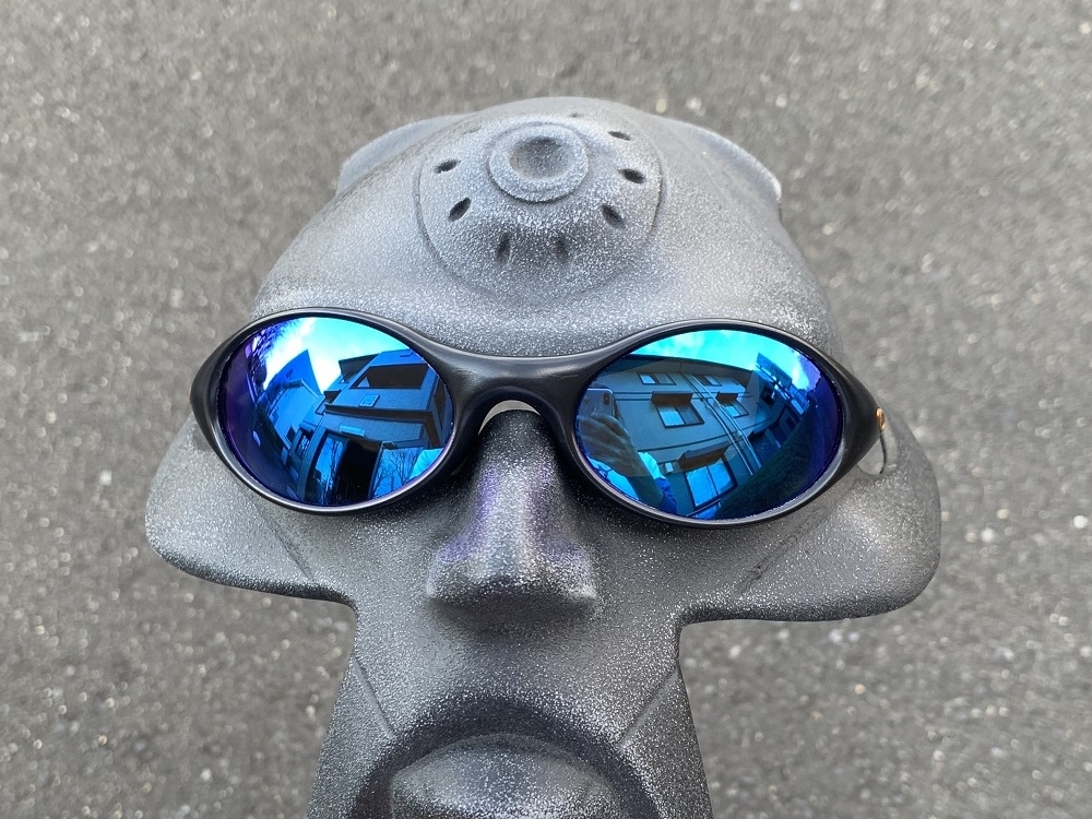 ミラーの印象はやや明るめのブルーです。目が透けて見えることはありません。OAKLEYのサファイアイリジウムと同じような色になりますが、ほんの少しだけ深いブルーになります。ベースレンズはグレーですが、ミラーの影響でレンズを通しての見え方はブラウンっぽく見えます。<レンズの詳細>・ミラー:やや明るめのブルー・ベースレンズ:グレー・透過率:10.47%・レンズカーブ:8・レンズの厚さ:1.7mm - 1.5mm・夜間の運転不可 /昼間の運転可※レンズ交換は手で簡単に行えます。パチンと外して、パチンと取り付けるだけです。※画像に写っているフレームは付属しません。 レンズ(1ペア)のみの出品になります。