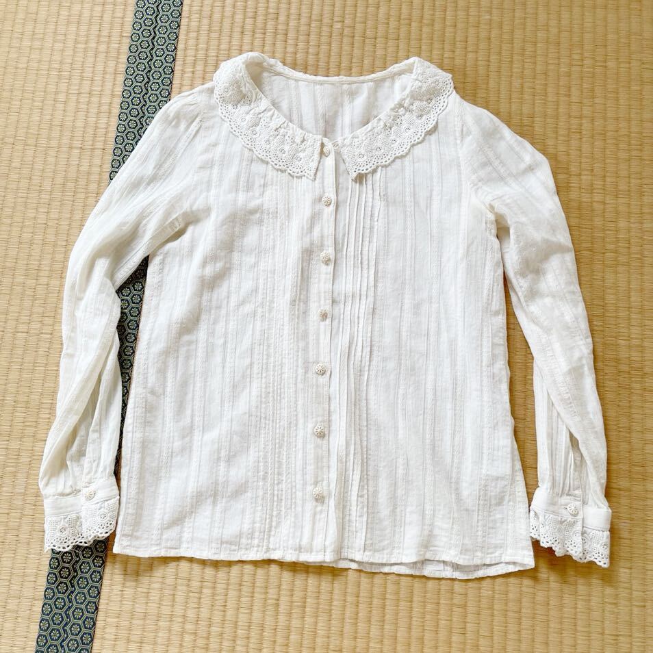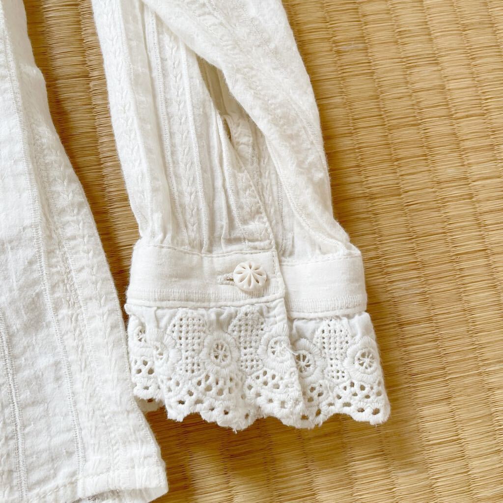 長袖シャツ ミルク色 綿100% 着丈62 肩幅35 身幅47袖丈58
