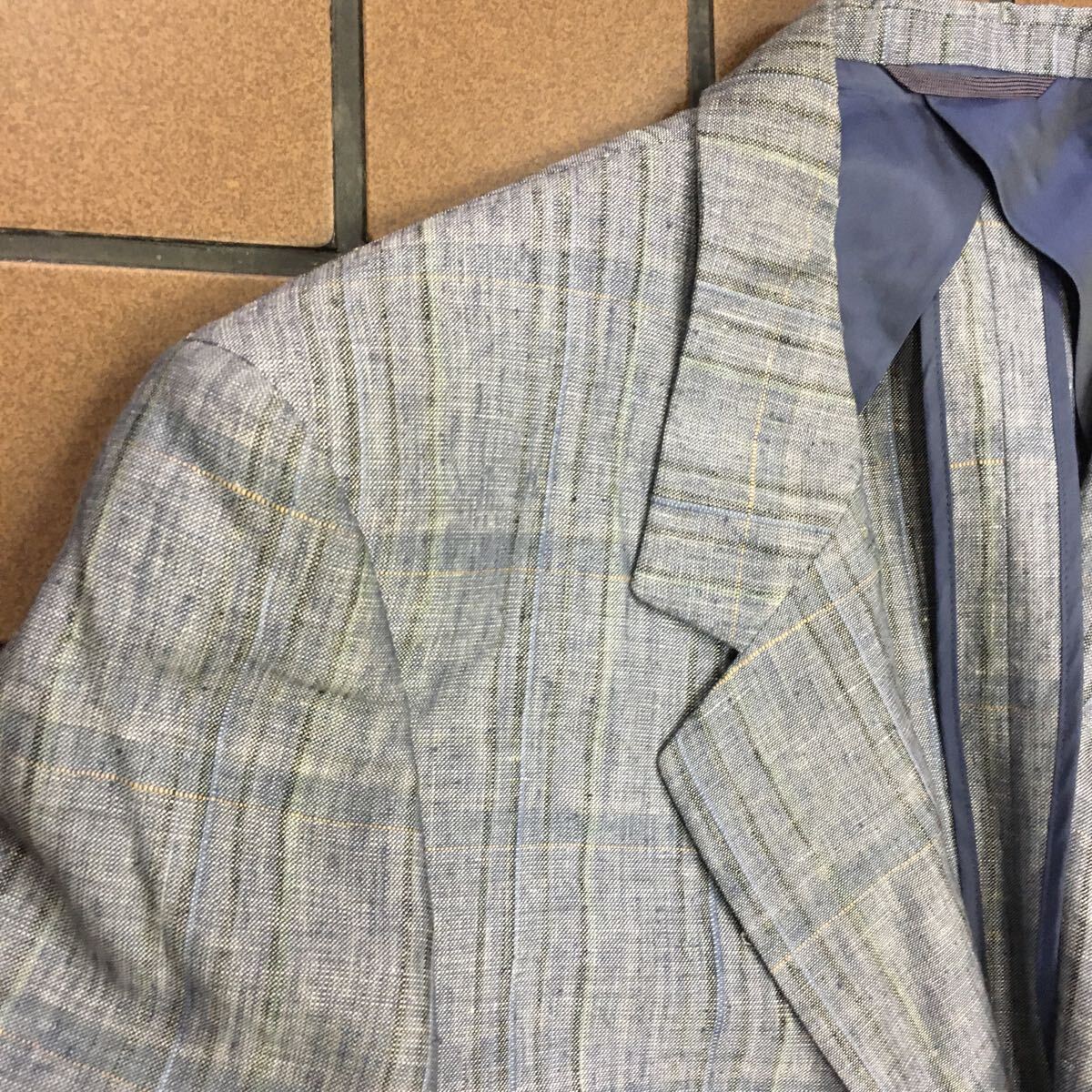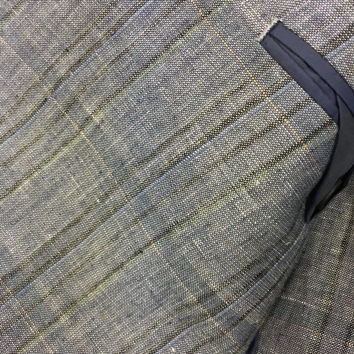 スモークブルー系にグレーやホワイトの縫い込まれたオシャレ生地更にブラック オレンジ ブルー ライトグリーンの淡くセクシーなラインが入ったダブルウインドペーンがヤバイ!!!