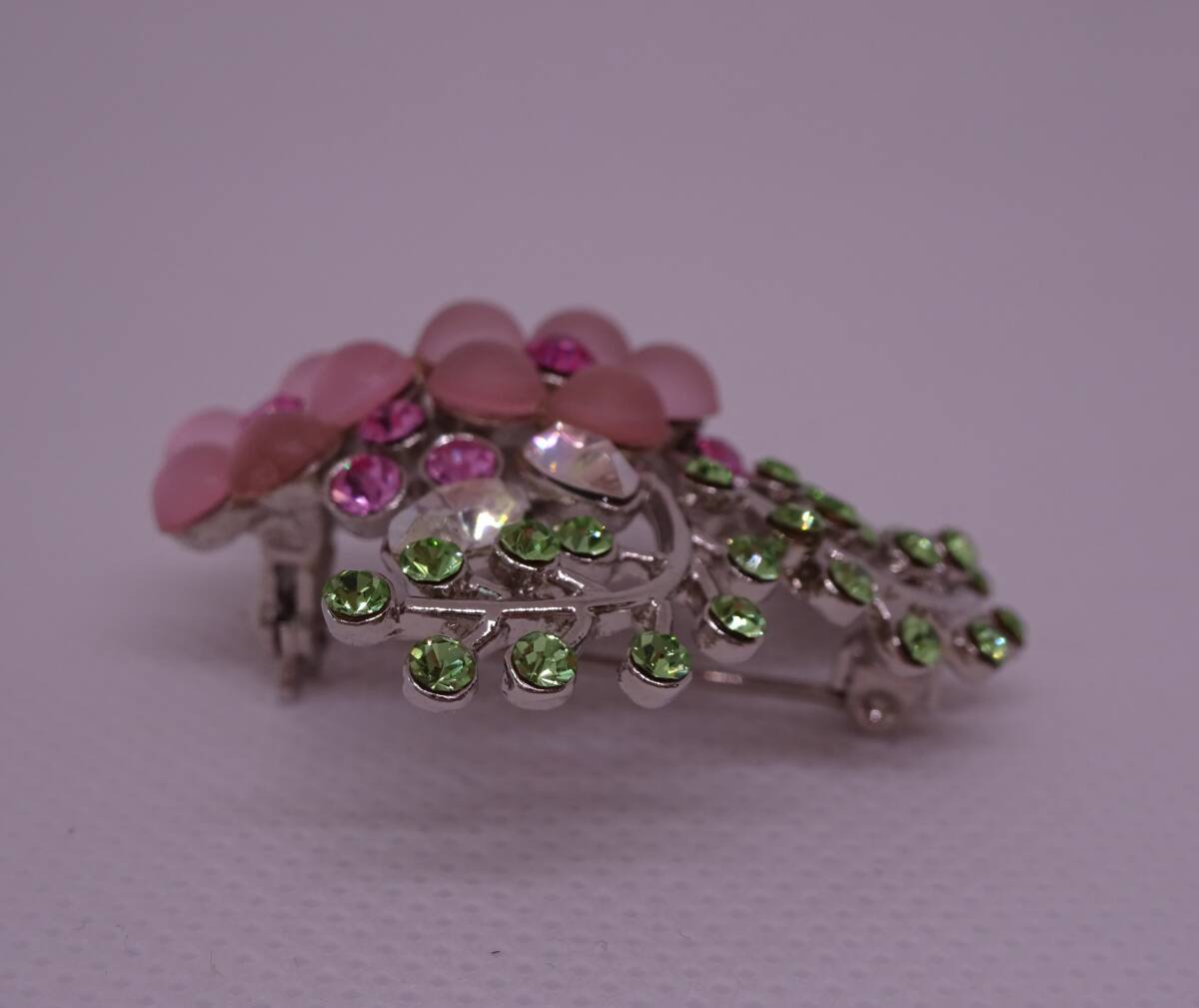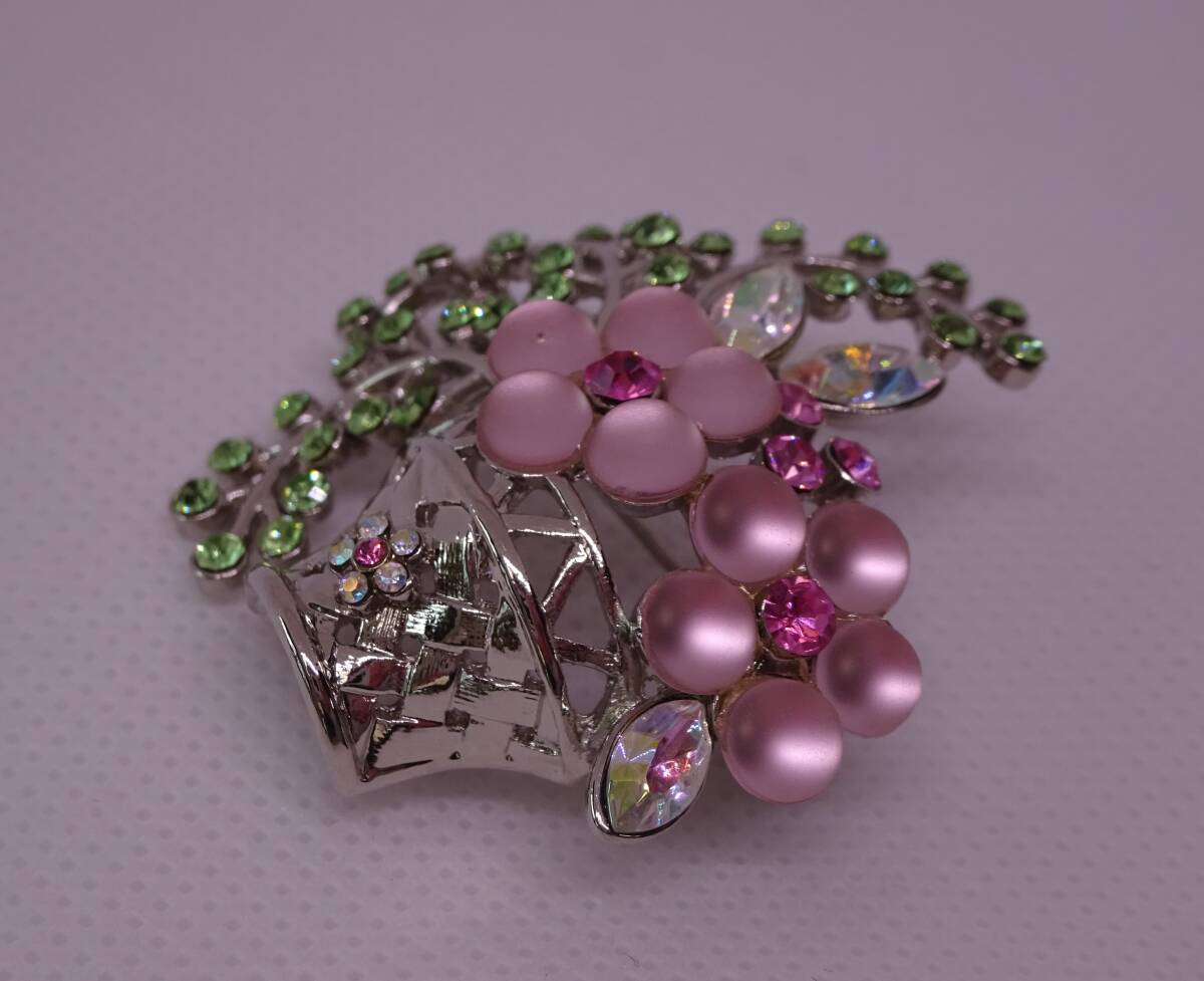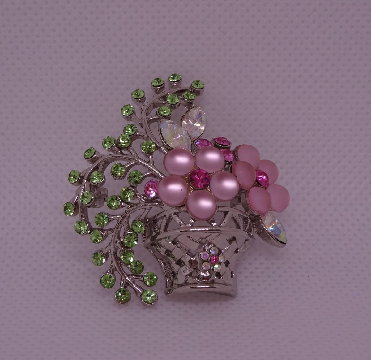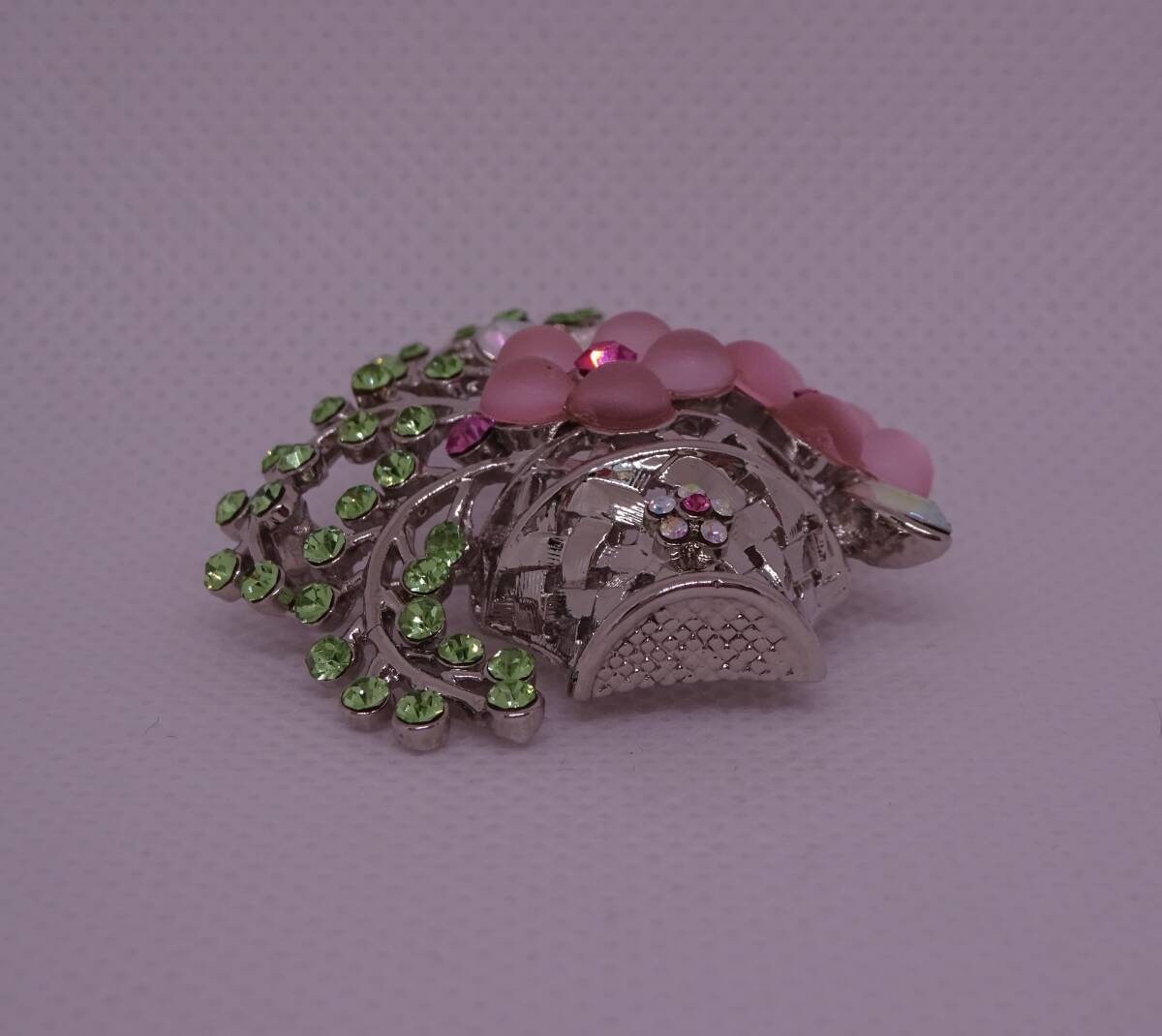 ブローチ フラワーバスケット 花かご キラキラ ピンク アクセント ゴージャス