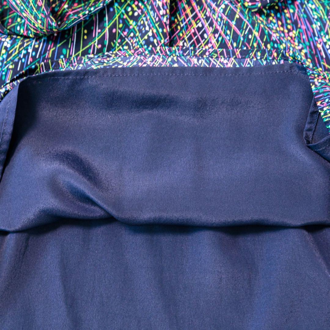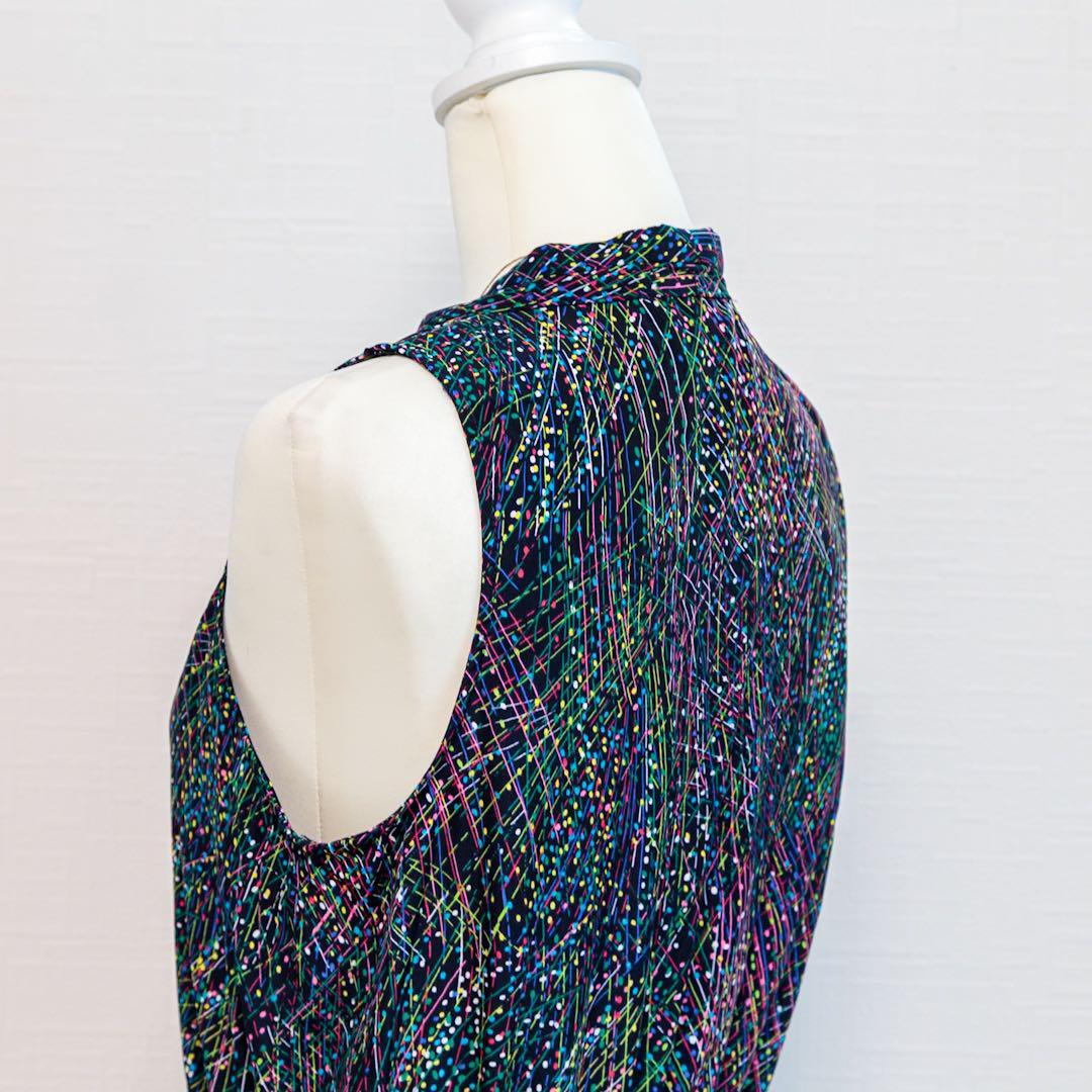 ウエストゴム入り Vネック膝丈ワンピース ノースリーブ 総柄 裏地あり