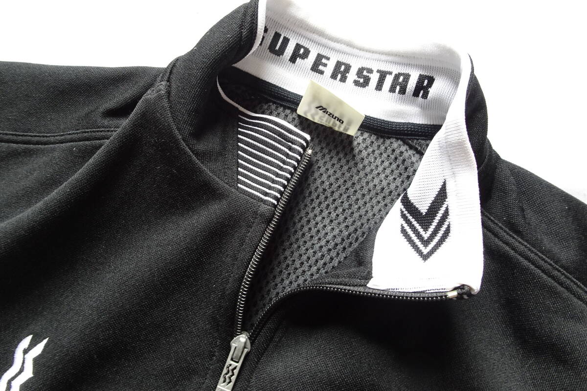 Mizuno SUPERSTAR/ミズノ/長袖トラックジャケット/ジャージ素材/前ジップアップ/袖矢印切替/スポーツ/黒/ブラック/Mサイズ(6/20R)