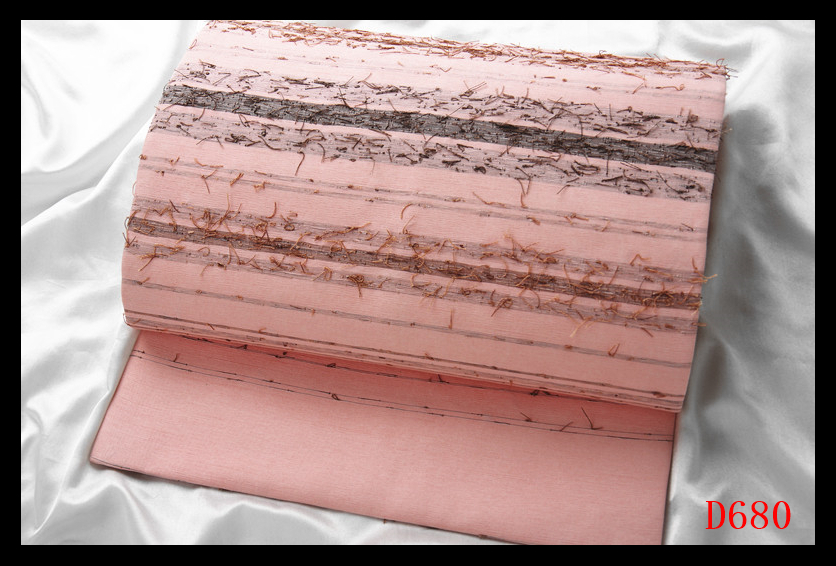 【D680】厳選逸品 ひげ紬 段紋 紅梅色地 気品豊かに 正絹高級美術名古屋帯 新品同様 ◇検◇簪着物名古屋帯袋帯帯締め