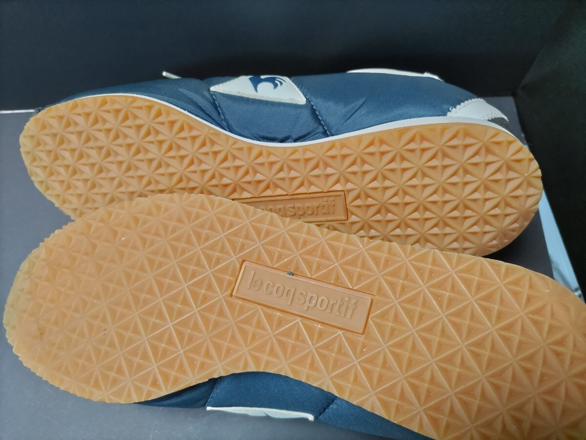 御覧頂き有り難う御座います、商品はル,コックleCopSportif正規品新品未使用になります。 サイズ25cm 未使用品ですが経年劣化していましたのでクリーニング時劣化しました、画像の様に少し擦れ等あります、箱もスレ等が有りますので宜しくお願い致します。