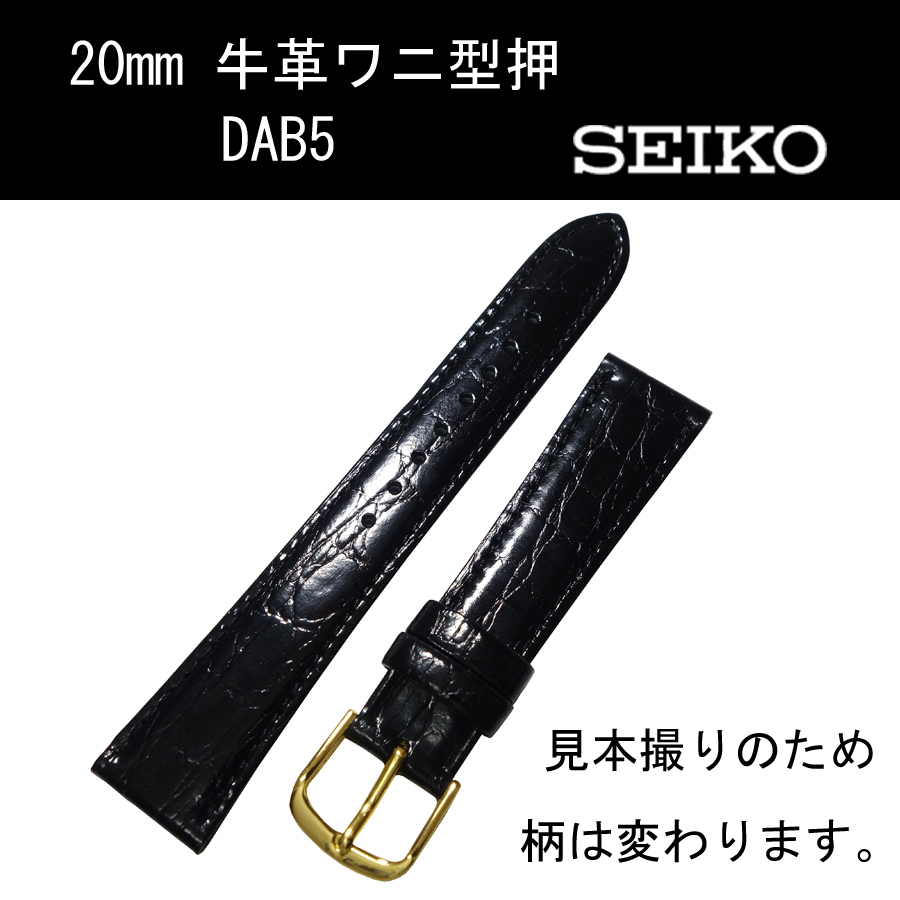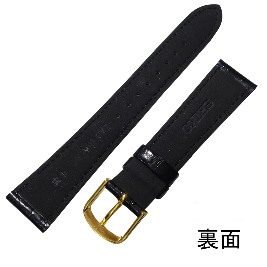 | 新品未使用国内正規品 牛革ワニ型押 メーカー:セイコー メーカー品番:DAB5 希望小売価格:3,700円+税 カン幅:20mm 美錠幅:15mm 厚み:2.3mm 長さ:美錠側 70mm(美錠含まず) 剣先側 115mm 色:黒 裏材:テグラン 美錠材質:アルミ 現在金色の尾錠がついておりますが、御希望で銀色に交換させていただきます。 尾錠のデザインが変わる場合があります。 特にご連絡がない場合は写真の現状の金色での発送となります。 | ||