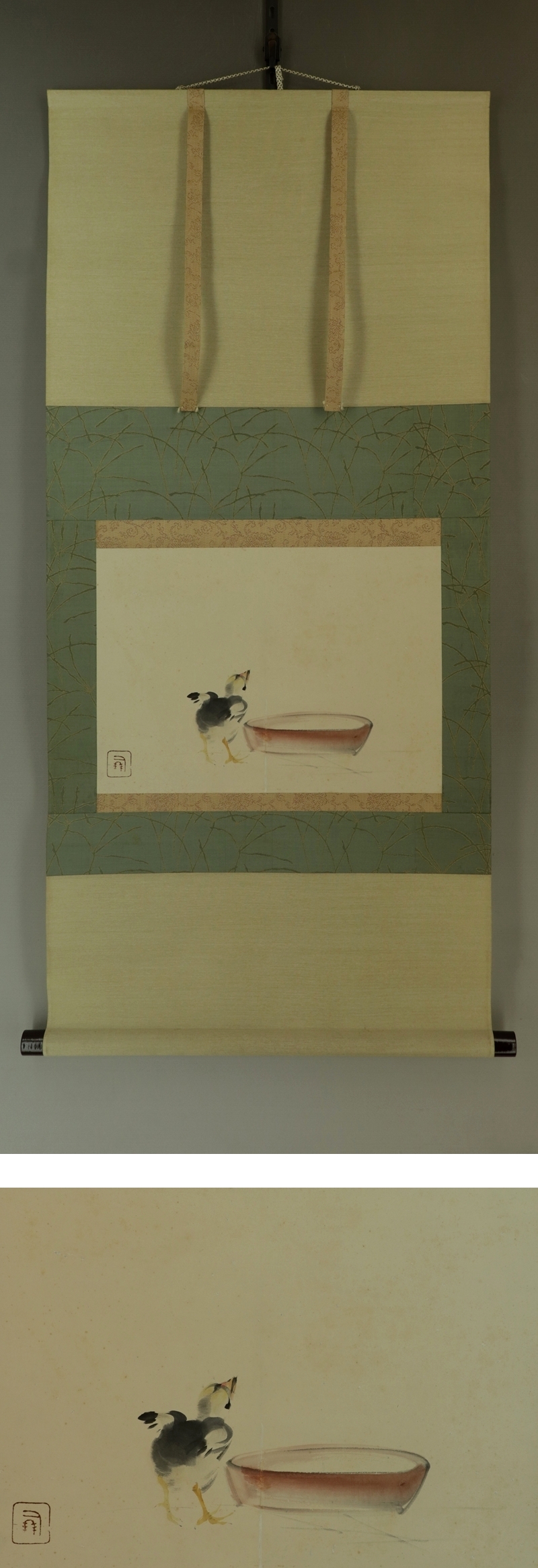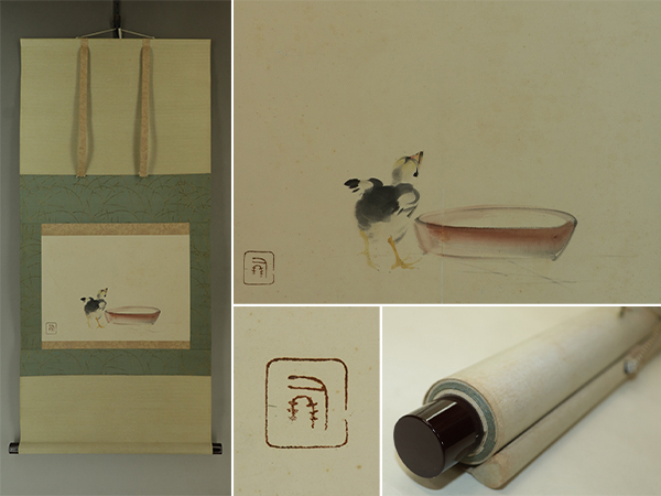 | №2405035【模写】竹内栖鳳【ひよこ】◆紙本◆合箱◆掛軸 | |