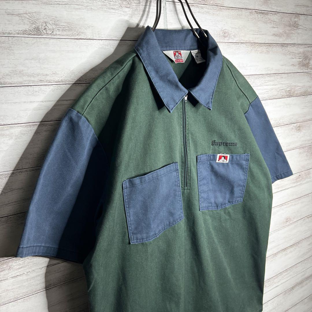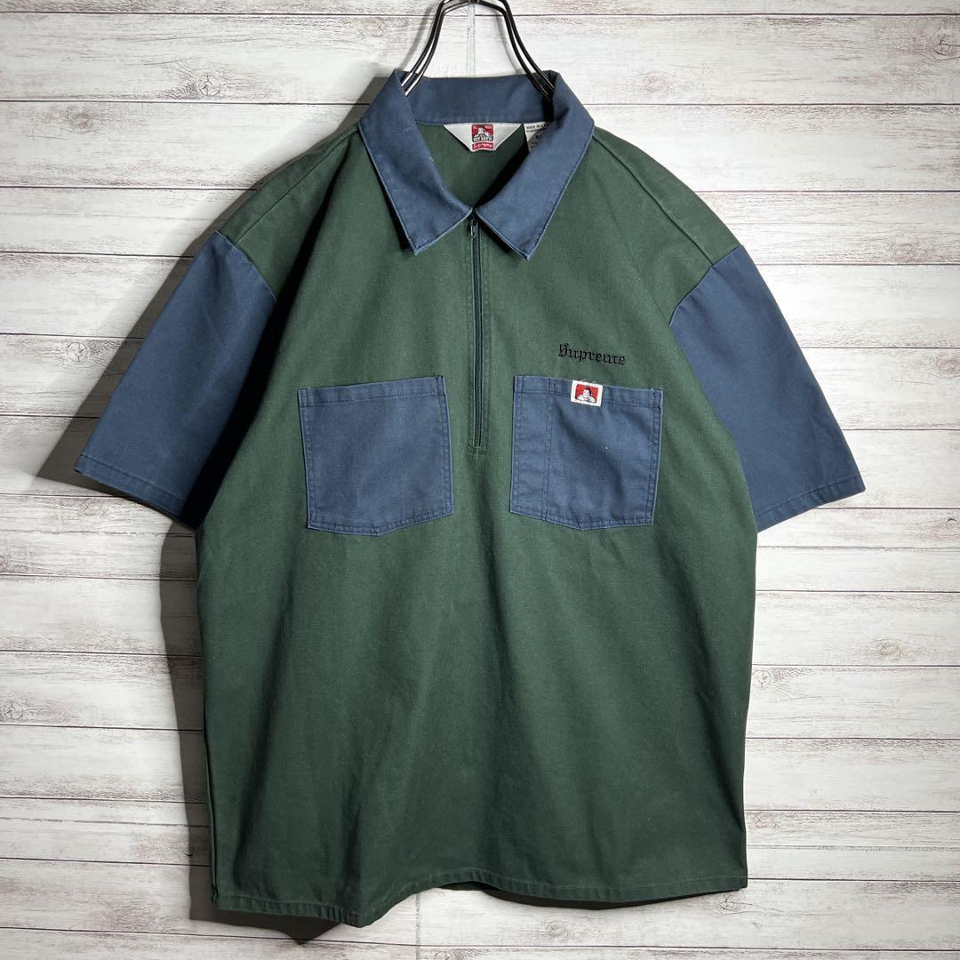 【入手困難!!】シュプリーム×ベンデイビスUSA製 刺繍 バイカラー ワークシャツ 半袖シャツ ゆるだぼ 重ね着 希少 supreme パーカー スウェット アメリカ製