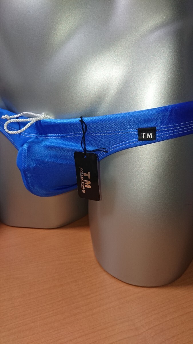 TM COLLECTION WET ローライズ フルバック ブーメラン ビキニ 競パン スイム 水着 WATER POLO ブリーフ 光沢 ウエット ブルー 青 Mサイズ