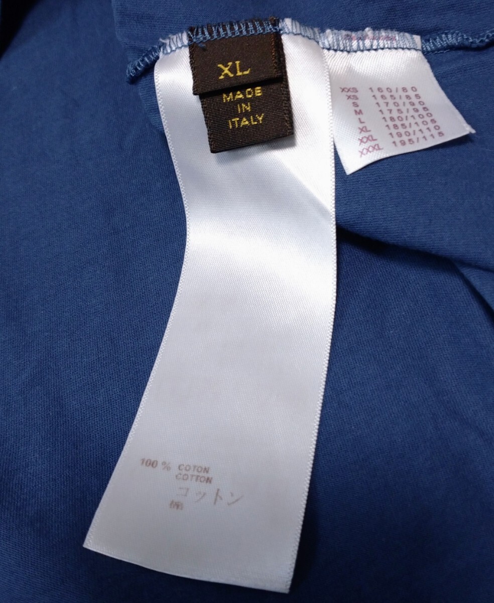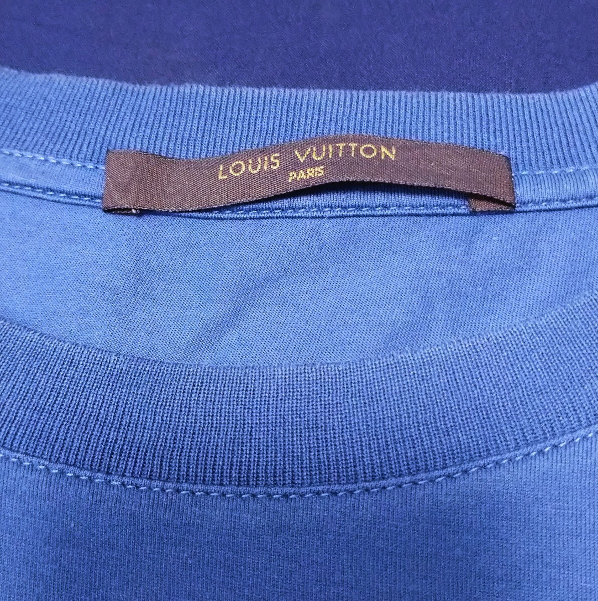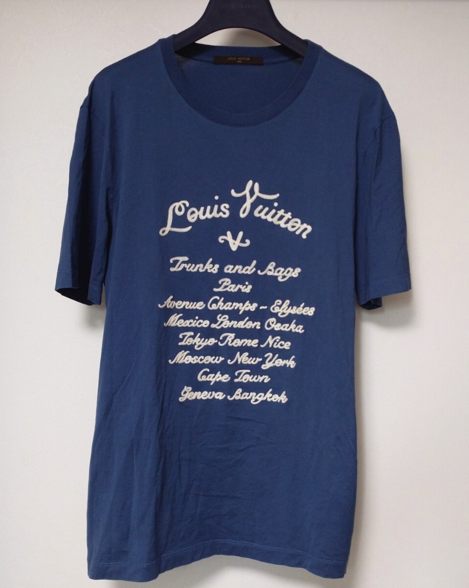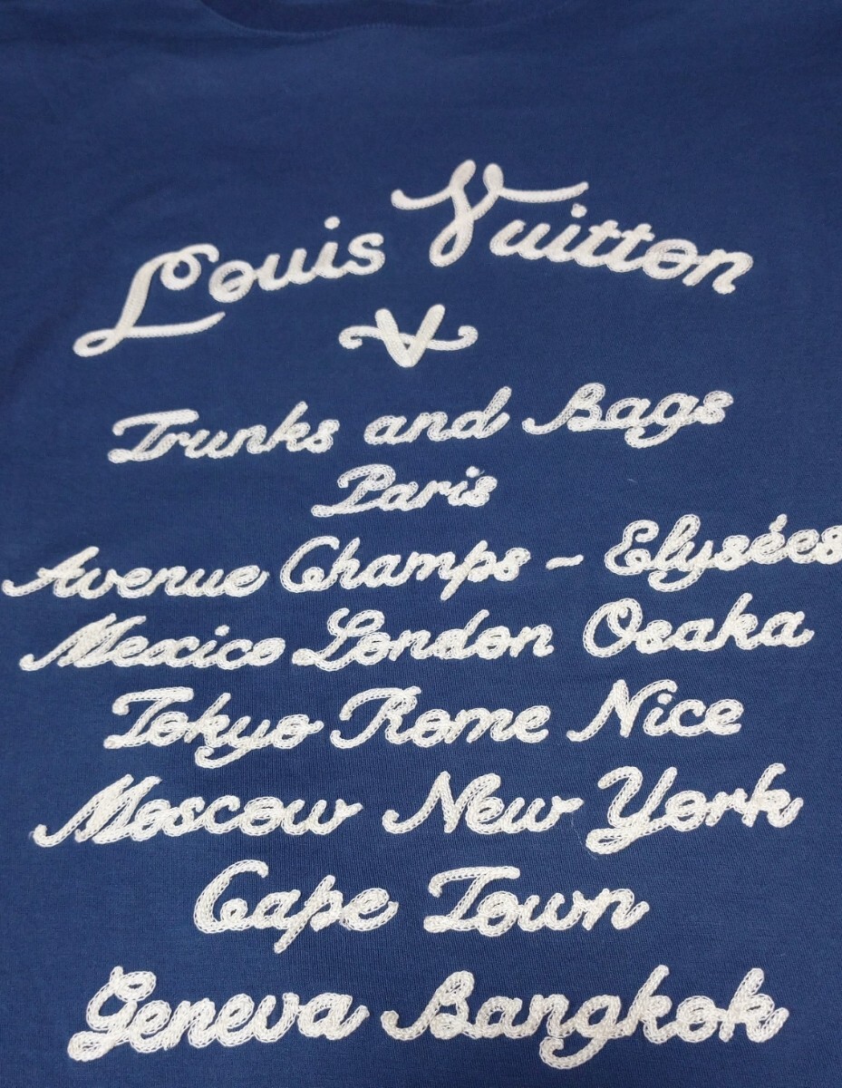 胸にはルイヴィトンのロゴを含むレター柄がチェーンステッチで施されています。