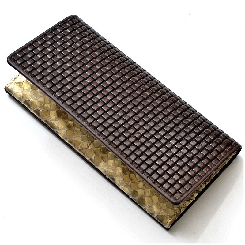 【クリスマス限定タイムセール】【送料込み】【限定】【新品】【税込み】牛革ブロックメッシュ☆薄金パイソン革☆ロングウォレット DBR